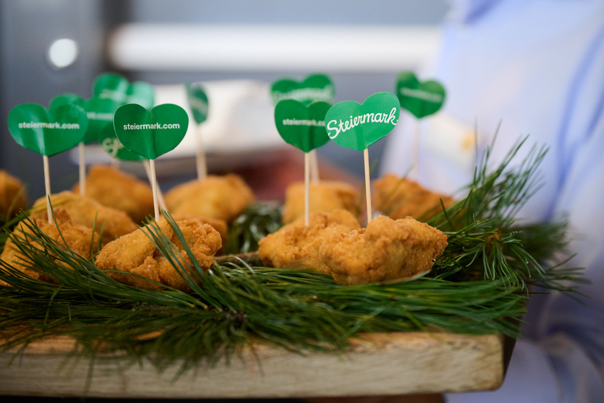 - Kulinarik: Lokalmatadorin Cornelia Poletto, Johann Lafer sowie Richard Rauch mit kulinarischen Schmankerln (Vulcano Schinken, Steirisches Beef-Tatar auf Omas Hefezopf und Kürbiskern-Chili-Mayonnaise; Buttermilch - Zirbenbackhendl mit geselchtem Käferbohnensalat; Kernölmousse und Vanilleeis mit Kürbiskernöl