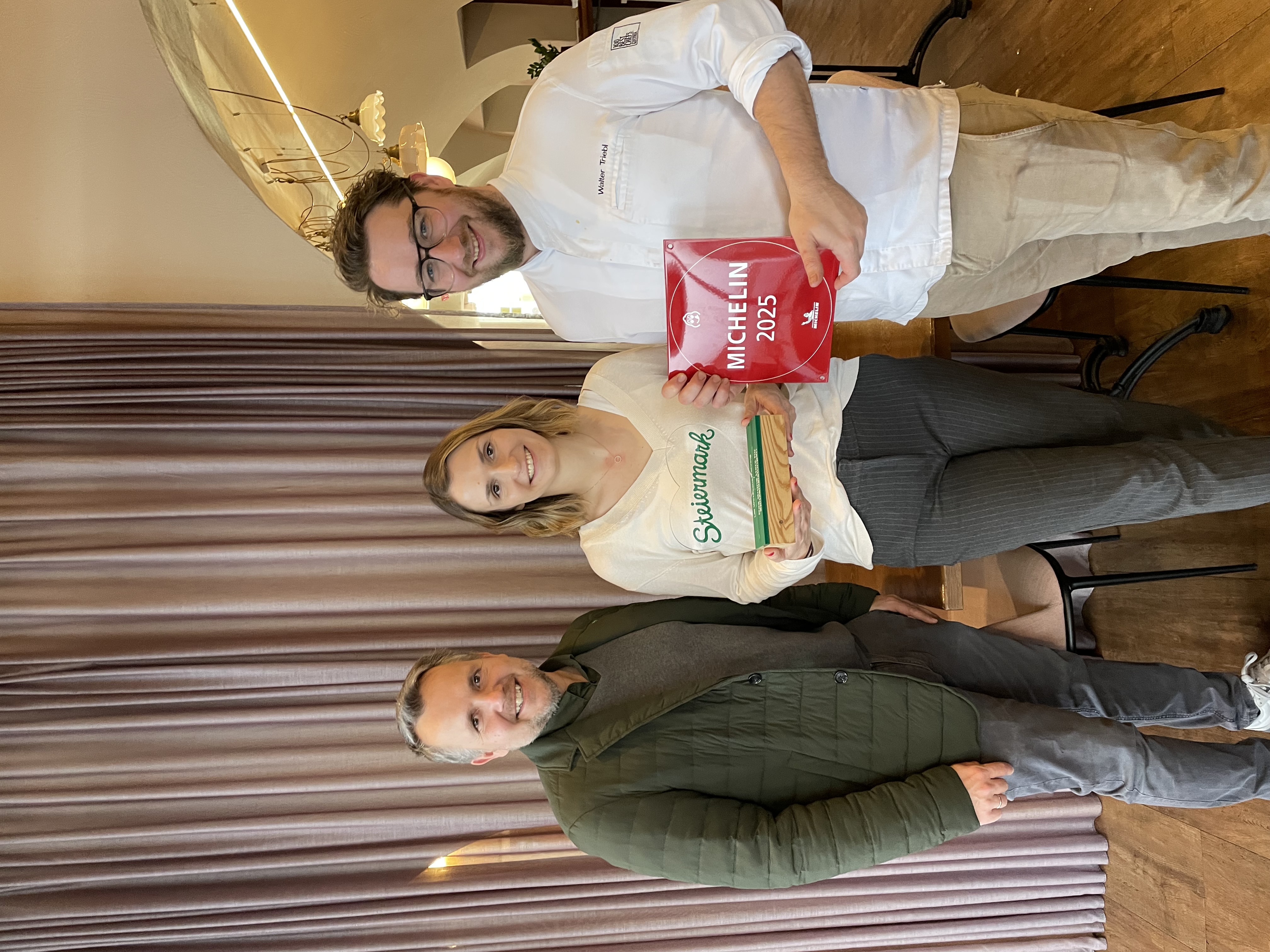 Michael Feiertag gratuliert Lilli Fehring und Malerwinkl zum Bib Gourmand