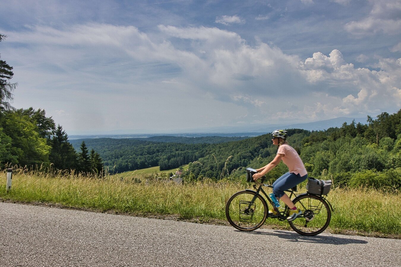 Radeln in der Ebene und Wandern auf den Kogel: diese Bike & Hike-Tour ist eine gelungene Kombination aus einer relativ langen Radstrecke und einer kurzen Wanderung. Im Süden von Graz radelt es sich sehr gemütlich: kaum Höhenmeter, zahlreiche Einkehrmöglichkeiten, interessante Sehenswürdigkeiten und viele beschilderte Radwege. Mit dem Buchkogel lernen wir ein beliebtes Wandergebiet am westlichen Stadtrand von Graz kennen. Auf schönen Steigen geht´s durch den Wald zur Kronprinz-Rudolf-Warte und zur Aussichtsplattform West: Der Blick von diesen Standorten wird so manchen Hiker & Biker begeistern! Nach der Wanderung ist vor der Radtour und somit stehen uns eine herrliche Abfahrt und das Ausradeln durch die Stadt bevor.