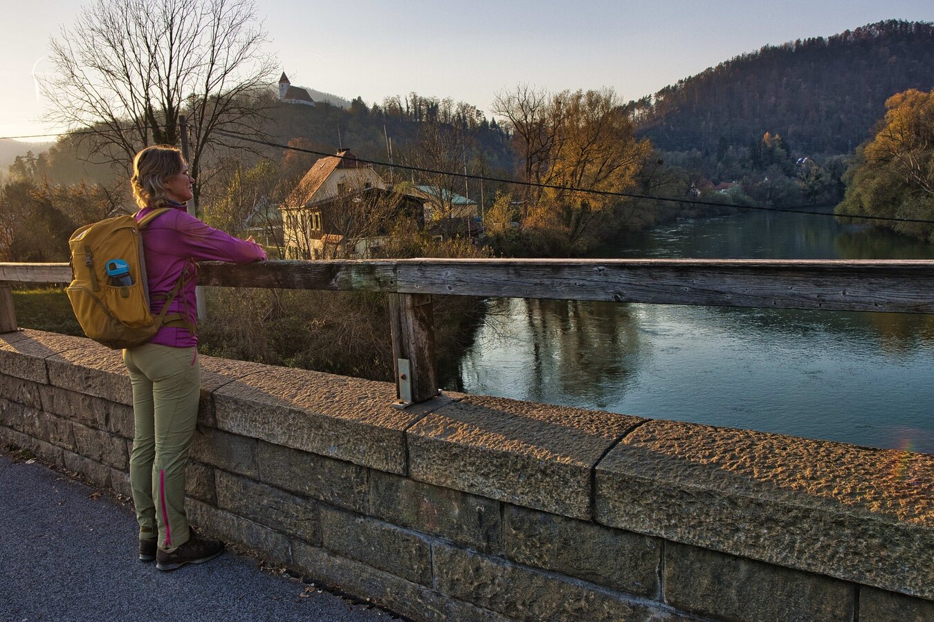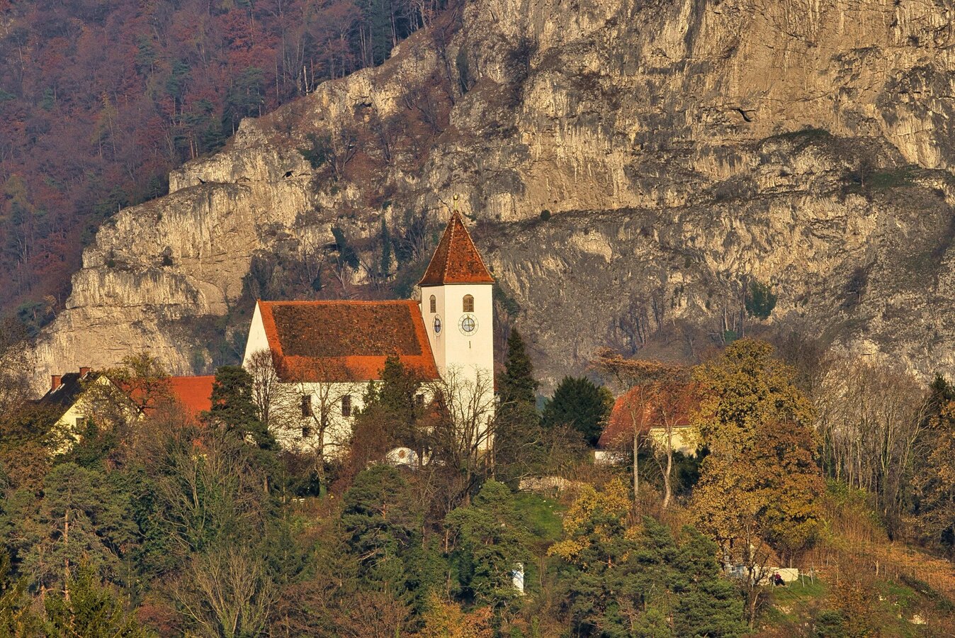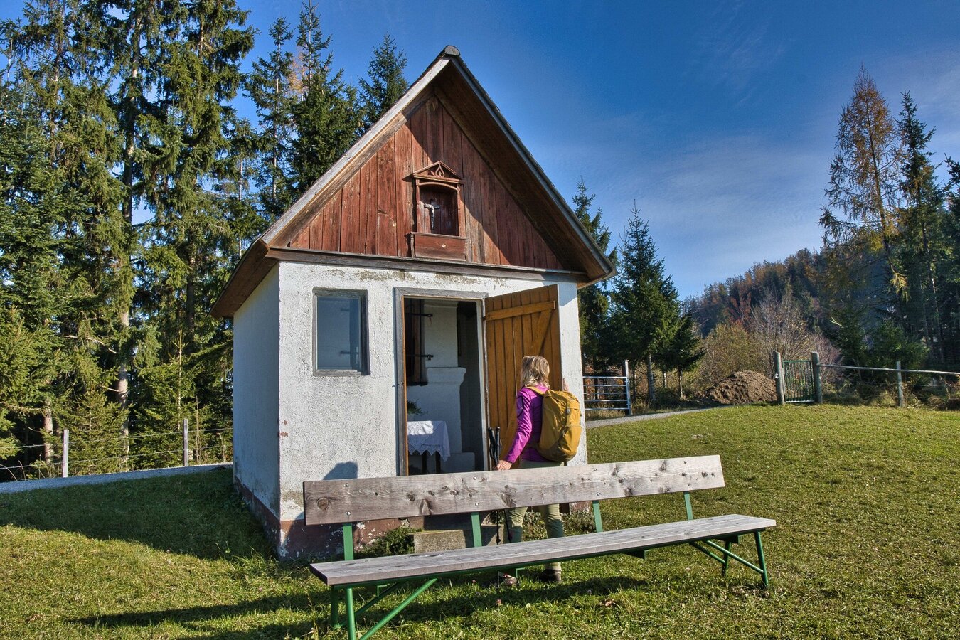 Die Marktgemeinde Übelbach mit knapp 2.100 Einwohnern war einst ein bedeutendes Zentrum des Silber- und Kupferbergbaus. Die historische Bedeutung des Ortes zeigt sich in den alten Handelswegen, die die Region durchzogen. Im 16. Jahrhundert erhielt Übelbach die Marktrechte und wurde zu einem wirtschaftlichen Knotenpunkt. Neben dem Grazer Bergland-Wanderweg laden verschiedene Themenwege ein, die Umgebung zu erkunden, darunter der Übelbacher Silberweg, die Drei-Birken-Wanderung, die Kalvarienberg-Wanderung und der Wasserthemenweg. Nach einem steileren Aufstieg führt die Wanderung in sanftem Auf und Ab durch aussichtsreiche Höhenzüge. Zahlreiche Wegkreuze und Bildstöcke prägen das Landschaftsbild. Unterwegs gibt es keine Einkehrmöglichkeiten, doch naturnahe Plätze laden ein, die Jause in Ruhe zu genießen und die Landschaft wirken zu lassen. Ein Höhepunkt der Etappe ist der Schartnerkogel (931 m), dessen eindrucksvolle Hochfläche einen atemberaubenden Ausblick bietet. Gegen Ende der Wanderung führt der Weg durch das Zentrum der Marktgemeinde Deutschfeistritz mit etwa 4.500 Einwohnern. Bevor es weiter zum Bahnhof in Peggau geht, bietet sich eine gemütliche Einkehr an. Ein Blickfang ist der Kirchberg, der über dem Ortszentrum thront. Ein Fußweg führt hinauf zum Plateau mit der Pfarrkirche als Aussichtspunkt. Ein weiteres Highlight ist das Sensenwerk Deutschfeistritz, ein Museum zur Geschichte der Sensenerzeugung und der industriellen Entwicklung der Region.