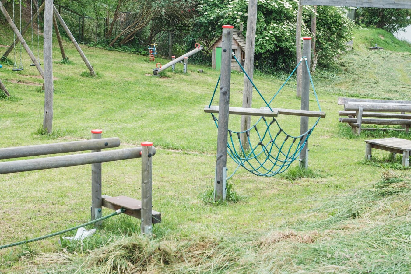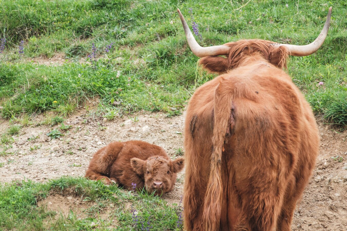 An der Gabelung, an der der Friedhofweg auf den Forstbauerweg trifft, geht es rechts weiter und an der nächsten geradeaus. Der weiteren Beschilderung folgend, führt die Route an einem Spielplatz und mehreren Rastbänken vorbei zu einer Wiese mit Hochlandrindern.