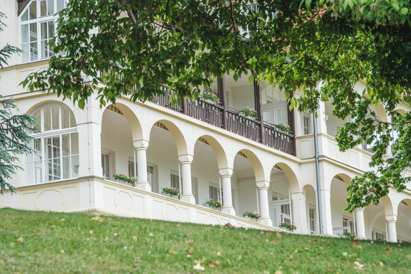 Während der Kinderrechteweg rechts weiter verläuft, führt der Kultur- und Naturwanderweg nach links weiter. Nach etwa fünfzehn Minuten ist das Ziel, das Landeskrankenhaus Enzenbach, erreicht.