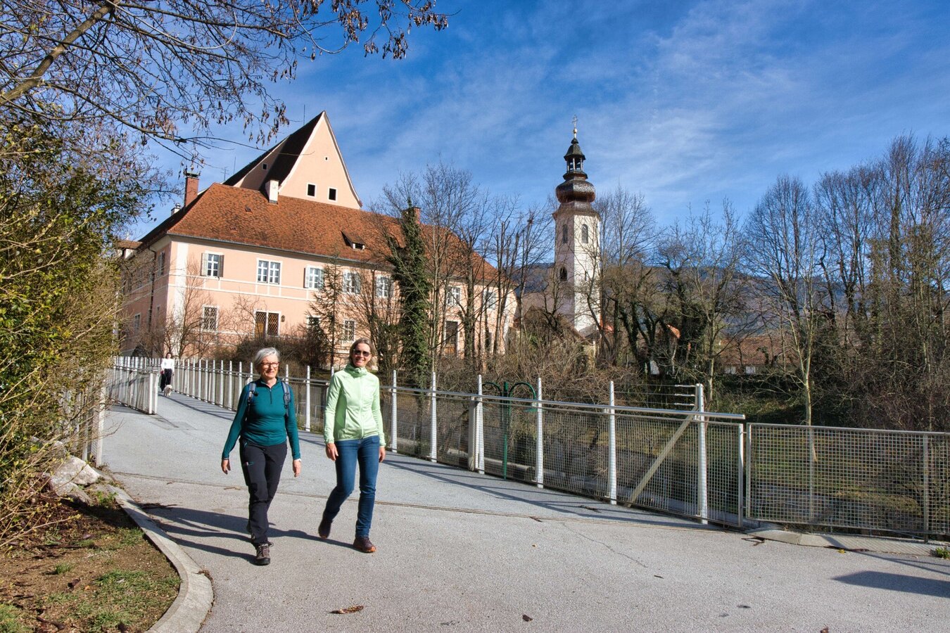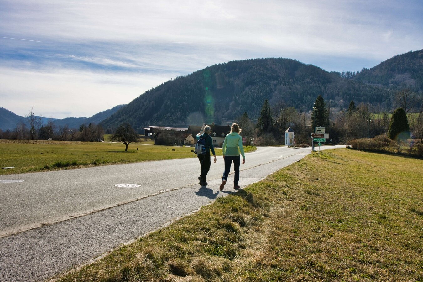 Bildstock folgen. Dort nach einem kurzen Anstieg in Richtung Adriach an der