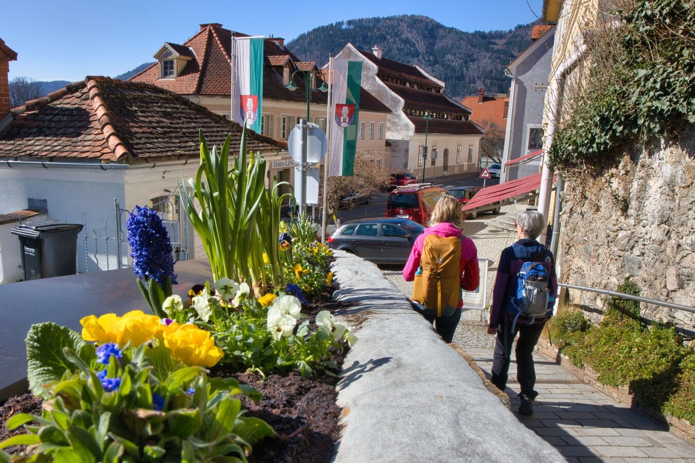 überqueren und den letzten sanften Anstieg zum Hauptplatz Frohnleiten (438 m) gehen.