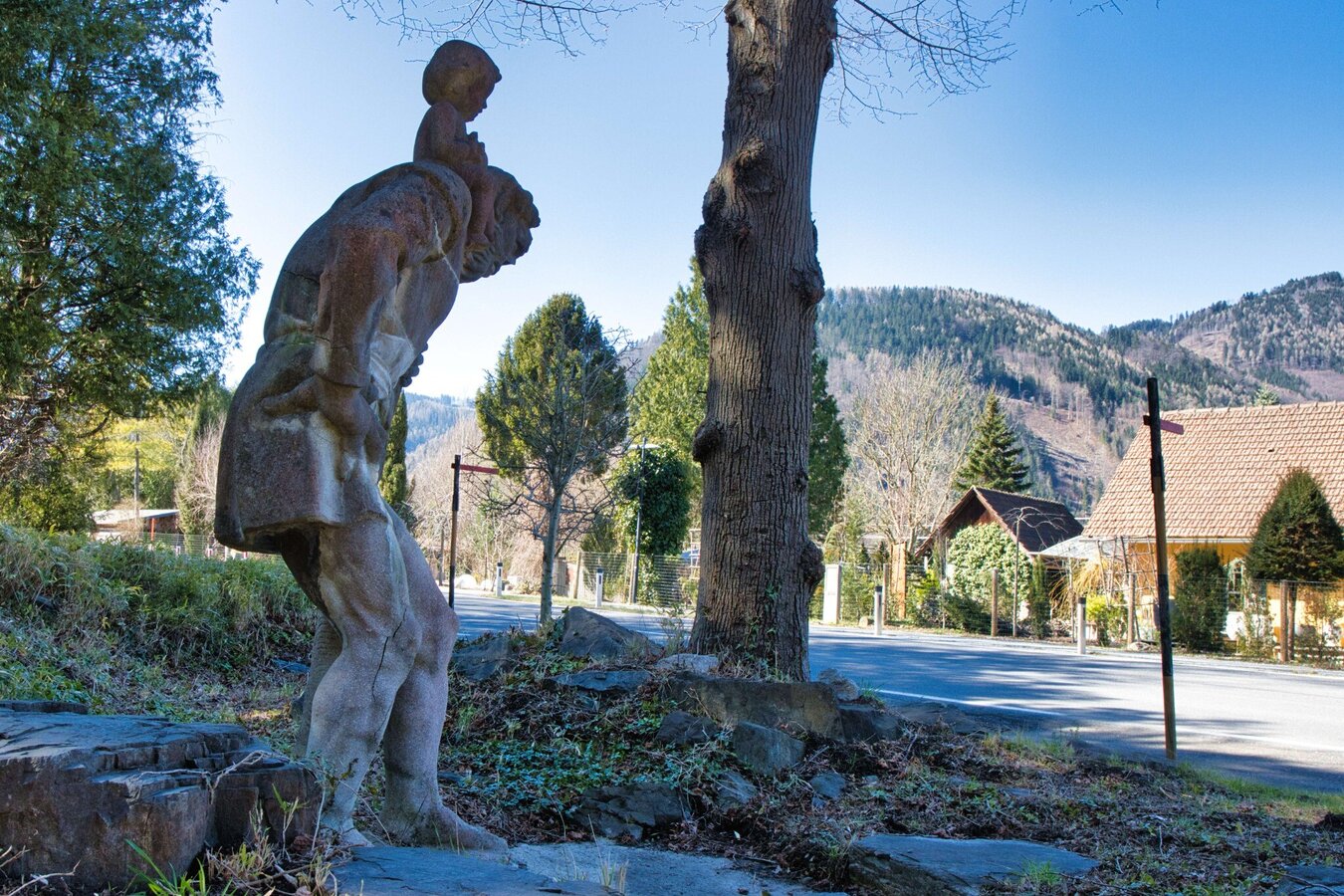zur Bushaltestelle Pichlhof an der Bundesstraße gehen. Nach dem Queren der
