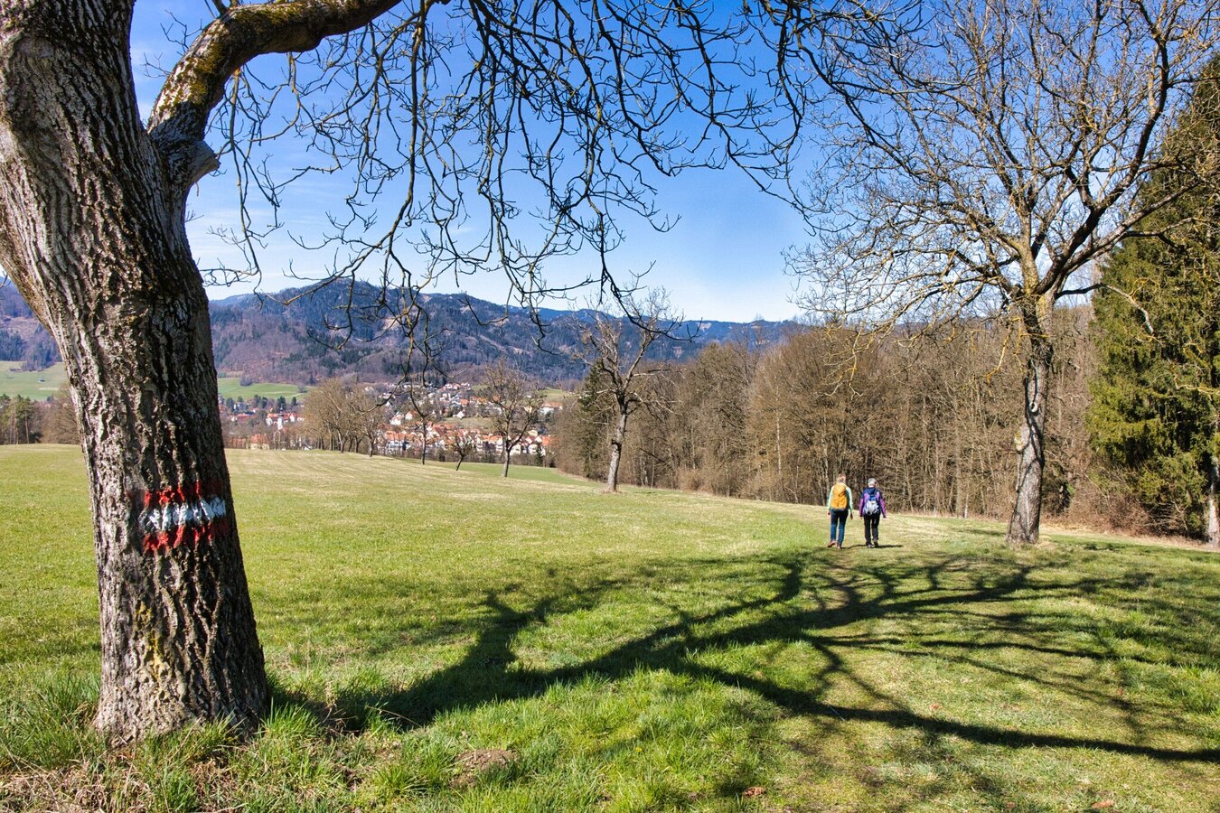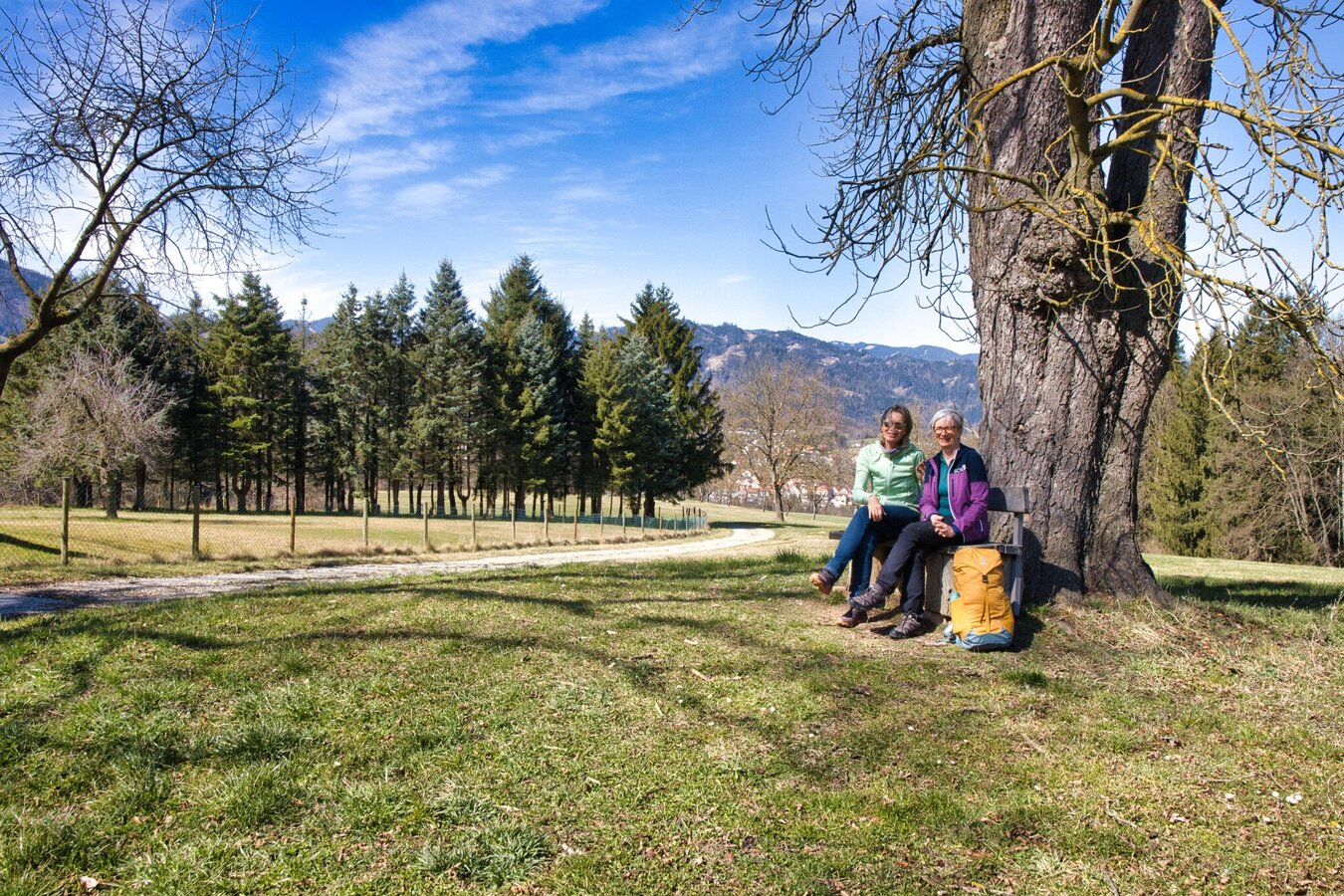 dem höchsten Punkt der Tour. Der Abstieg erfolgt durch eine Nussallee mit Blick