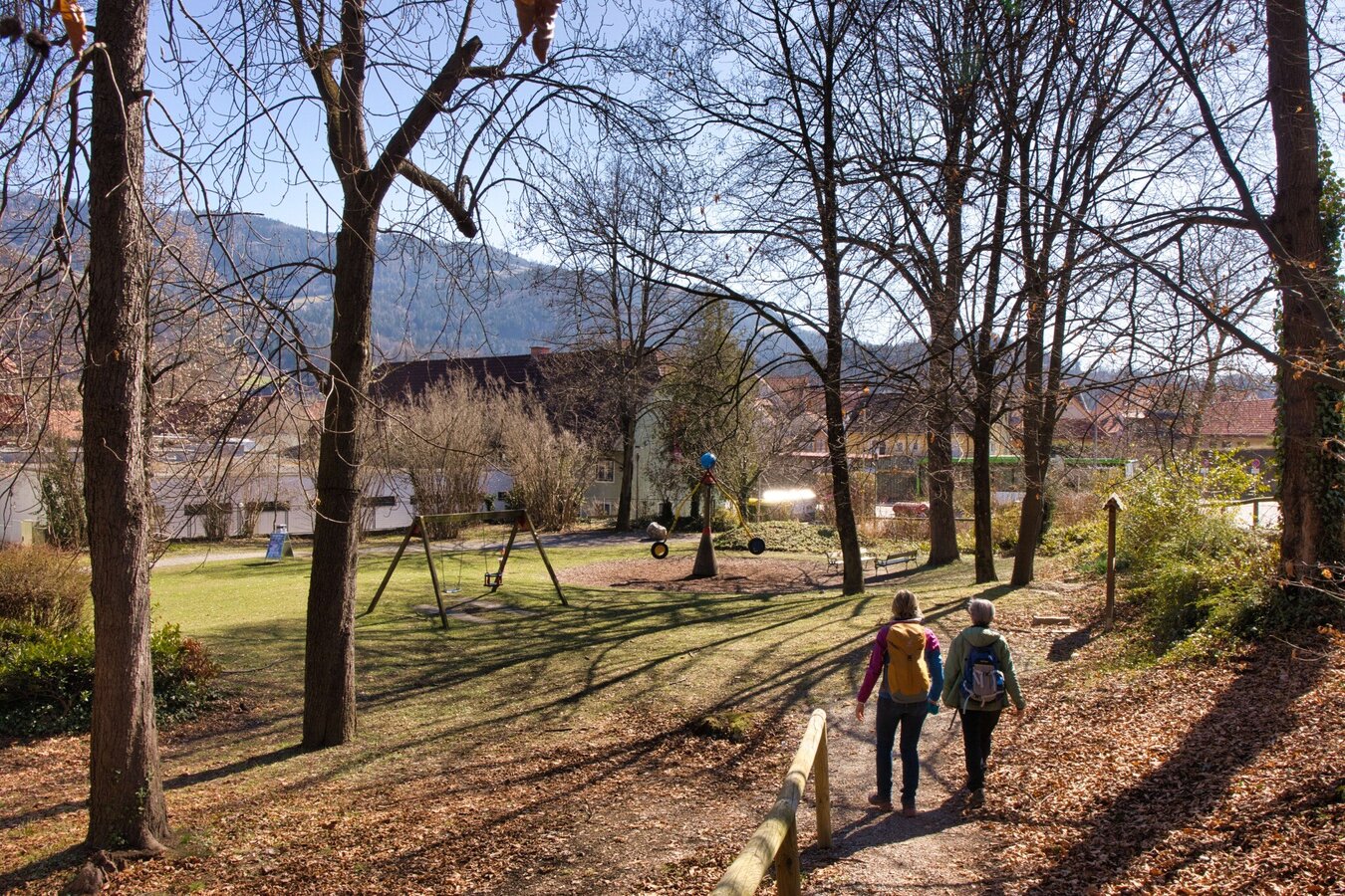 bei Hauptplatz 39 bergauf bis zu einem Spielplatz (463 m). Von hier verläuft