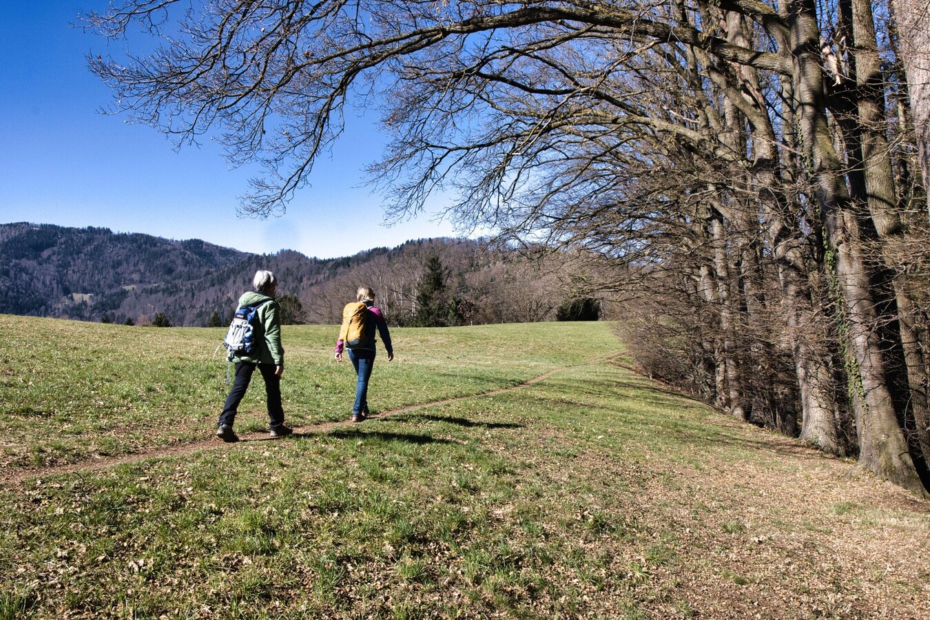 ein Steig entlang einer aussichtsreichen Geländekante zur Infotafel „Station 14