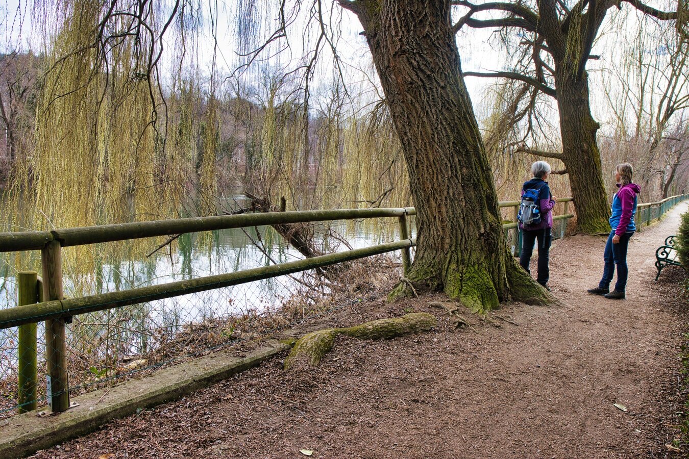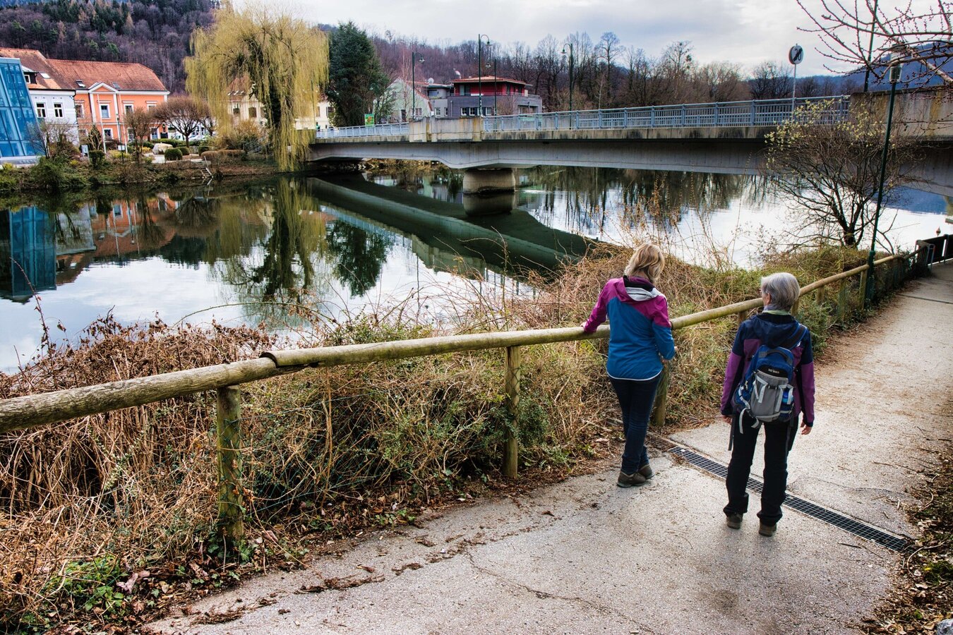 haltend, zum Einstieg in die Murpromenade. Etwa einen Kilometer geht es