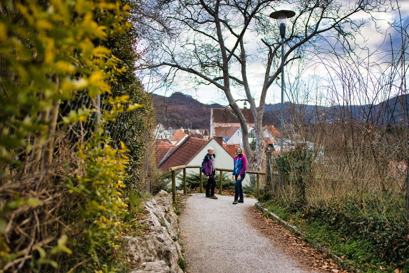 (438 m) führt der Weg durch das Tor „Am Tabor“ hinab und anschließend, links