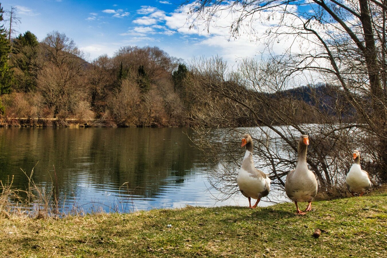 flussabwärts, bis an der nächsten Kreuzung rechts abgebogen wird. Der Weg