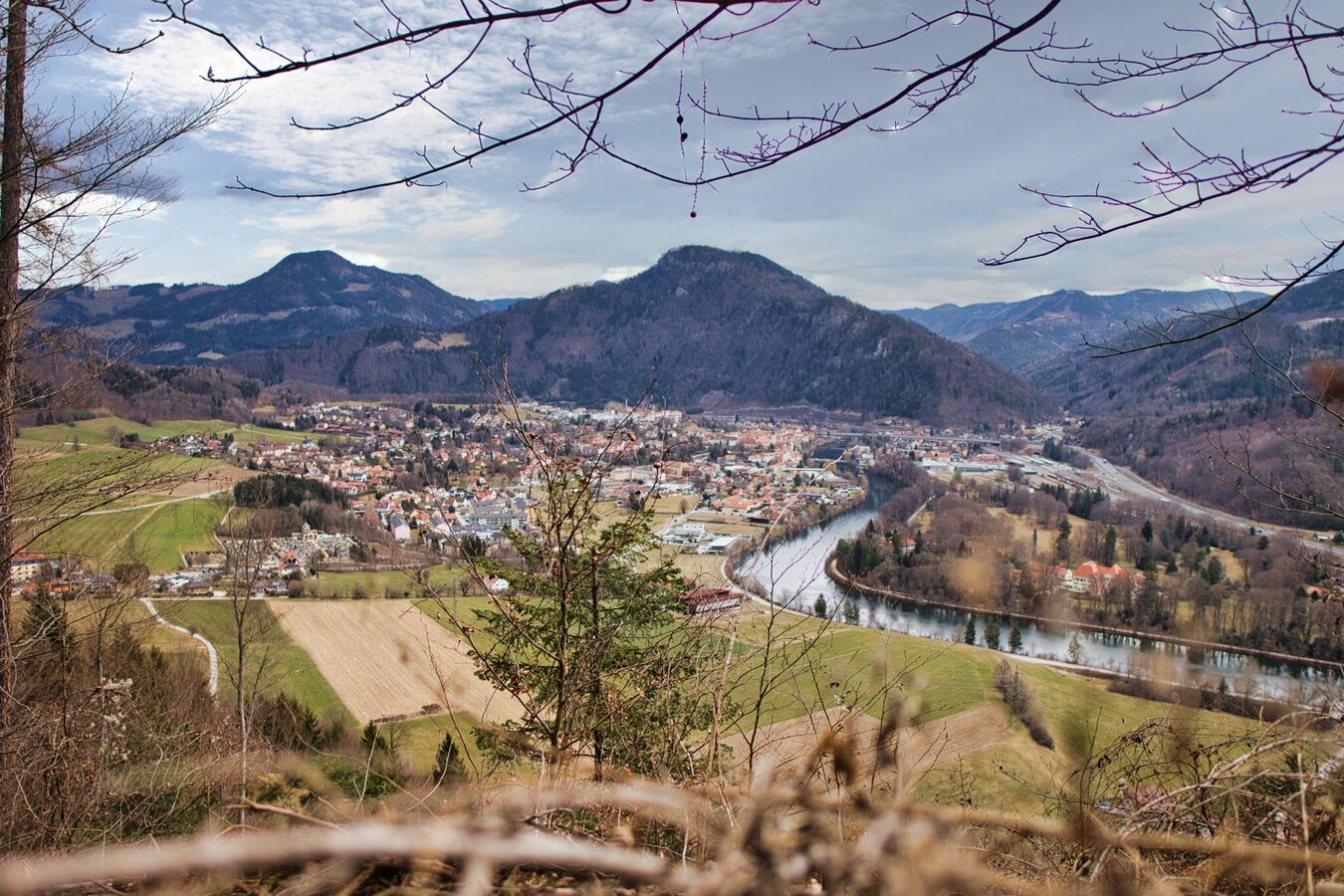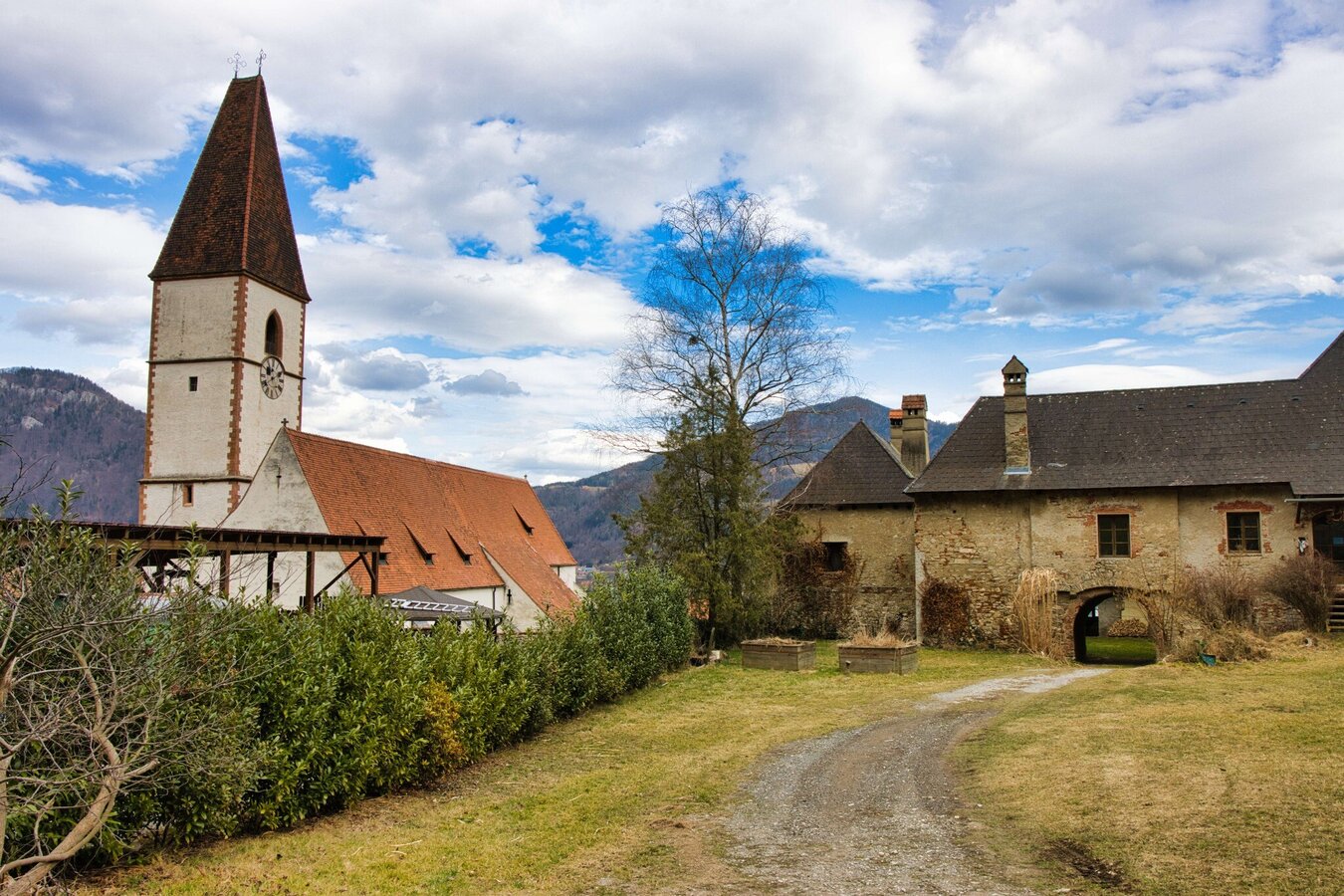aussichtsreichen Panoramaweg bis zur Kirche in Adriach folgen. Von dort