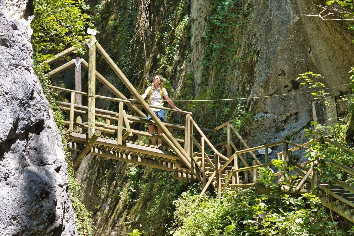 Hike-Tour ist Abenteuer und Erlebnis zugleich, da der Wanderweg mit mehr als 50 Leitern und Brücken direkt durch die wildromantische Kesselfallklamm führt. Die Klamm ist ein geschütztes Naturdenkmal und wird oftmals als kleine Schwester der mächtigen Bärenschützklamm bei Mixnitz bezeichnet. Die Rundwanderung besteht einerseits aus dem Aufstieg durch die Klamm und andererseits aus dem Weg vorbei am „Steintor“ zurück zum Gasthaus Sandwirt.