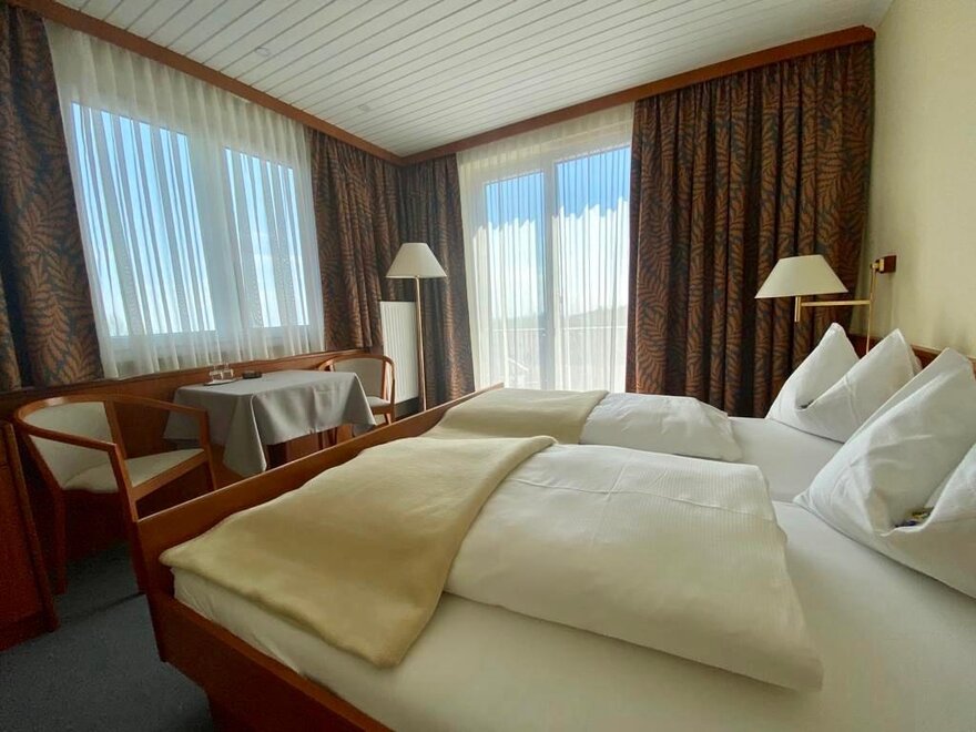 Unsere Zimmer sind alle mit Dusche/WC, Fön, Balkon, SAT-TV, Minibar, Wasserkocher und WLAN ausgestattet.