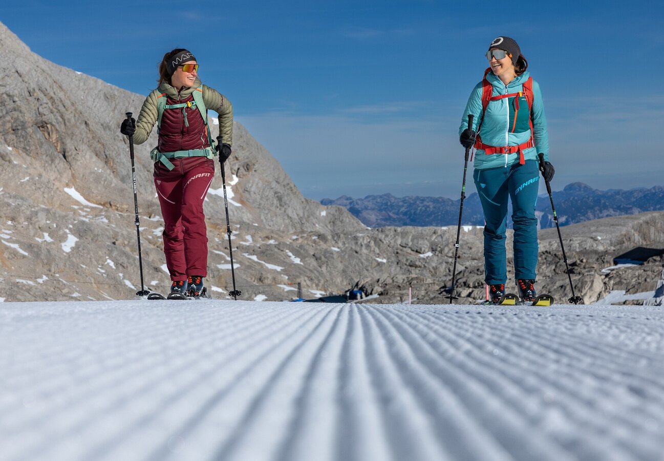 Selbstverständlich findest du in Schladming und in der Ramsau/Dachstein viele Anbieter, die dich beim Start in deine Skitourenkarriere unterstützen und die richtige Aufstiegs- und Abfahrtstechnik vermitteln, oder bei anspruchsvolleren Unternehmen deine Tourenplanung übernehmen und dich sicher durch das hochalpine Gelände führen.