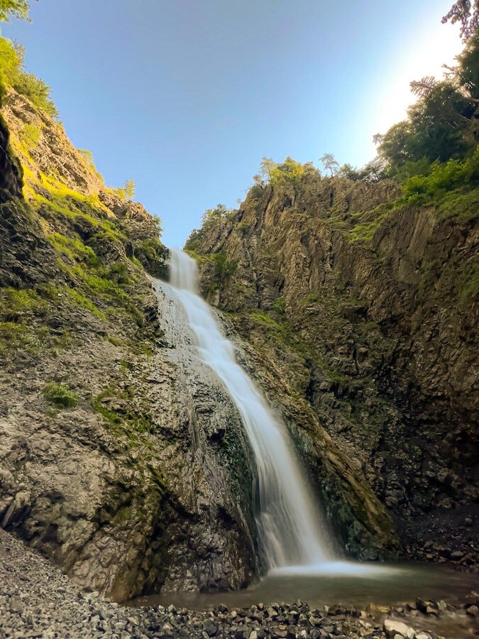 Je näher du dem Ziel kommst, desto eindrucksvoller wird die Umgebung: Auf einem gesicherten Steig, der sich in Serpentinen am Hang entlangwindet, überquerst du kleine Brücken und erreichst schließlich den wildromantischen Wasserfall von Lessern – je nach Jahreszeit stürzt das Wasser hier aus bis zu 80 Metern Höhe tosend in die Tiefe. Ein idealer Ort, um innezuhalten und die Kraft der Natur auf sich wirken zu lassen.