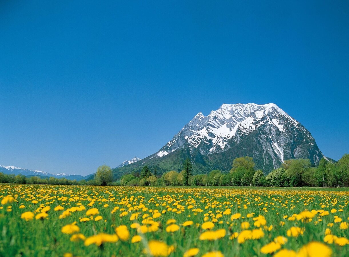 Blumenwiese in Trautenfels mit Grimming im Hintergrund | © Steiermark Tourismus/bigshot.at | Schladming Dachstein