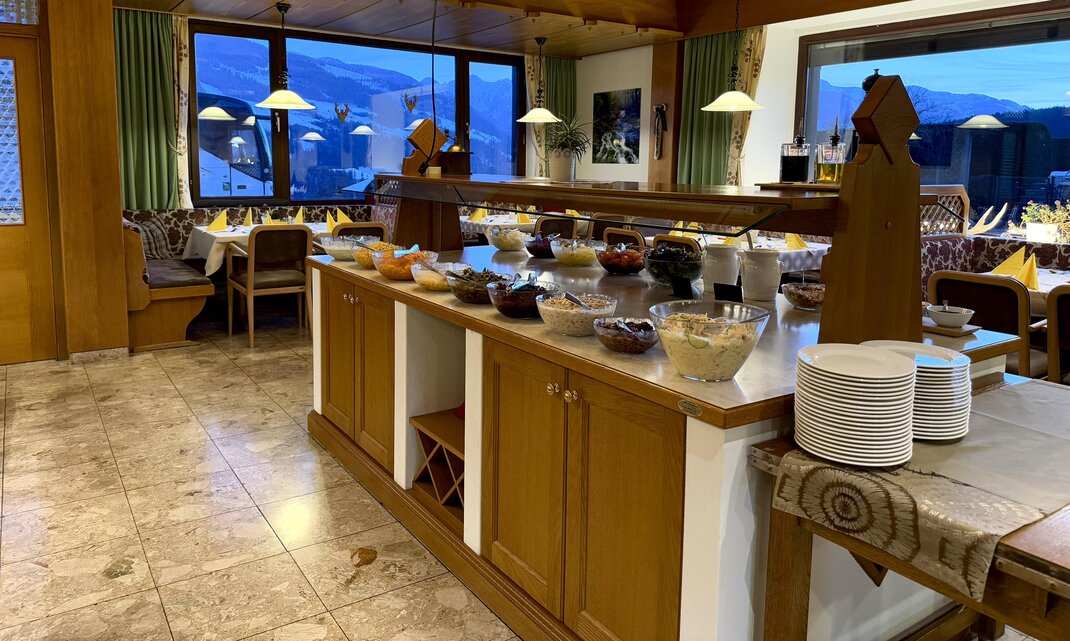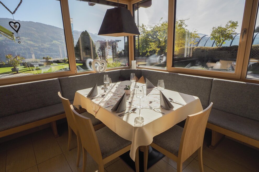 Am Morgen verwöhnen wir Sie mit einem herzhaften reichhaltigen Frühstücksbuffet mit Produkten aus der eigenen Landwirtschaft. Abends lassen Sie es sich mit regionalen Speisen bei einem Menü Ihrer Wahl, Salatbuffet und einem ausgewählten Wein- und Getränkesortiment so richtig gut gehen. Auf Wunsch servieren wir auch vegetarische Gerichte. Zudem sorgen die Kachelofenstube, die Zirbenstube, der Wintergarten und die Sonnenterrasse bei einem Getränk für wohliges Gefühl. Relaxen Sie in unserem Saunabereich mit Finnischer Sauna, Dampfbad, Infrarotkabine und Solarium.