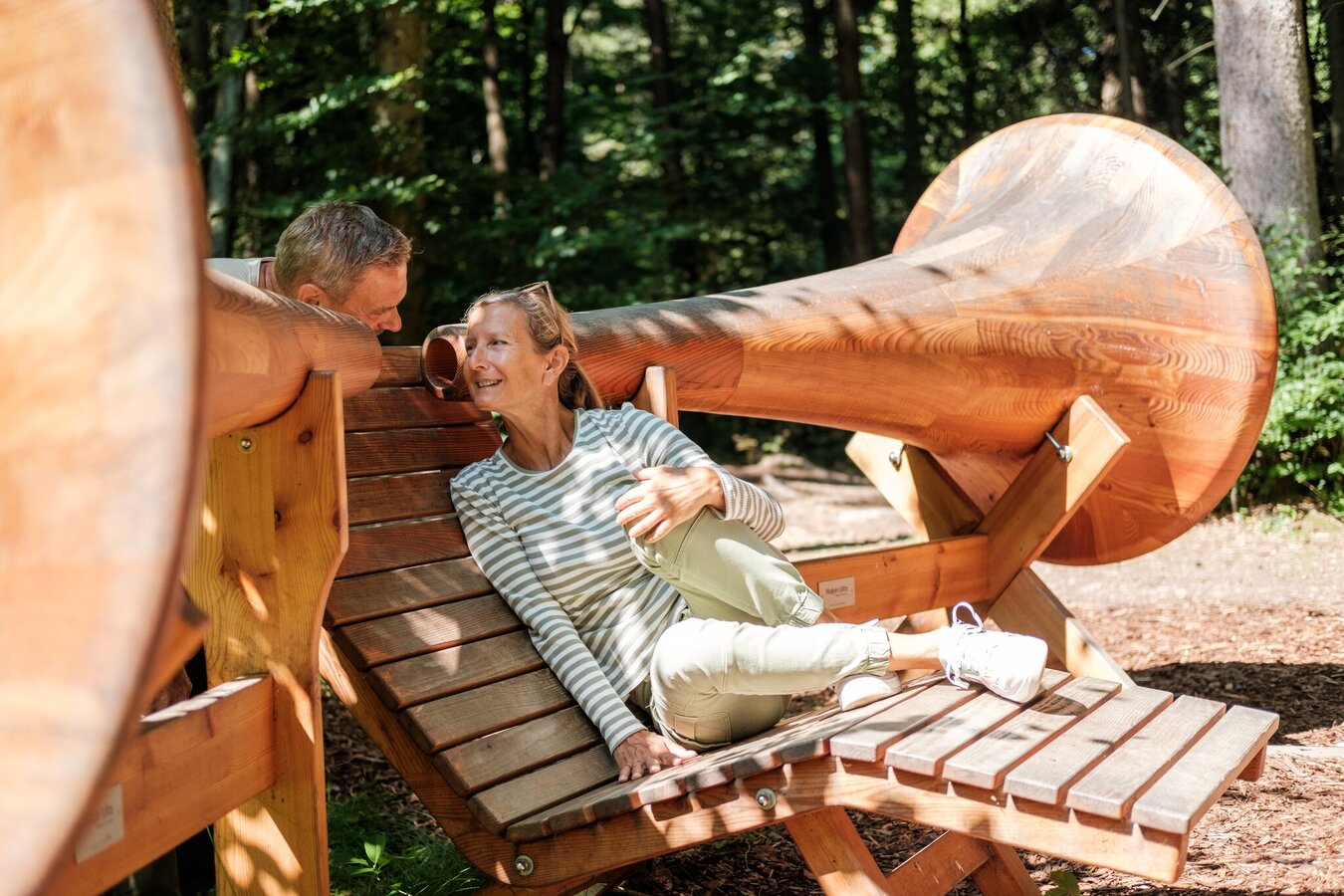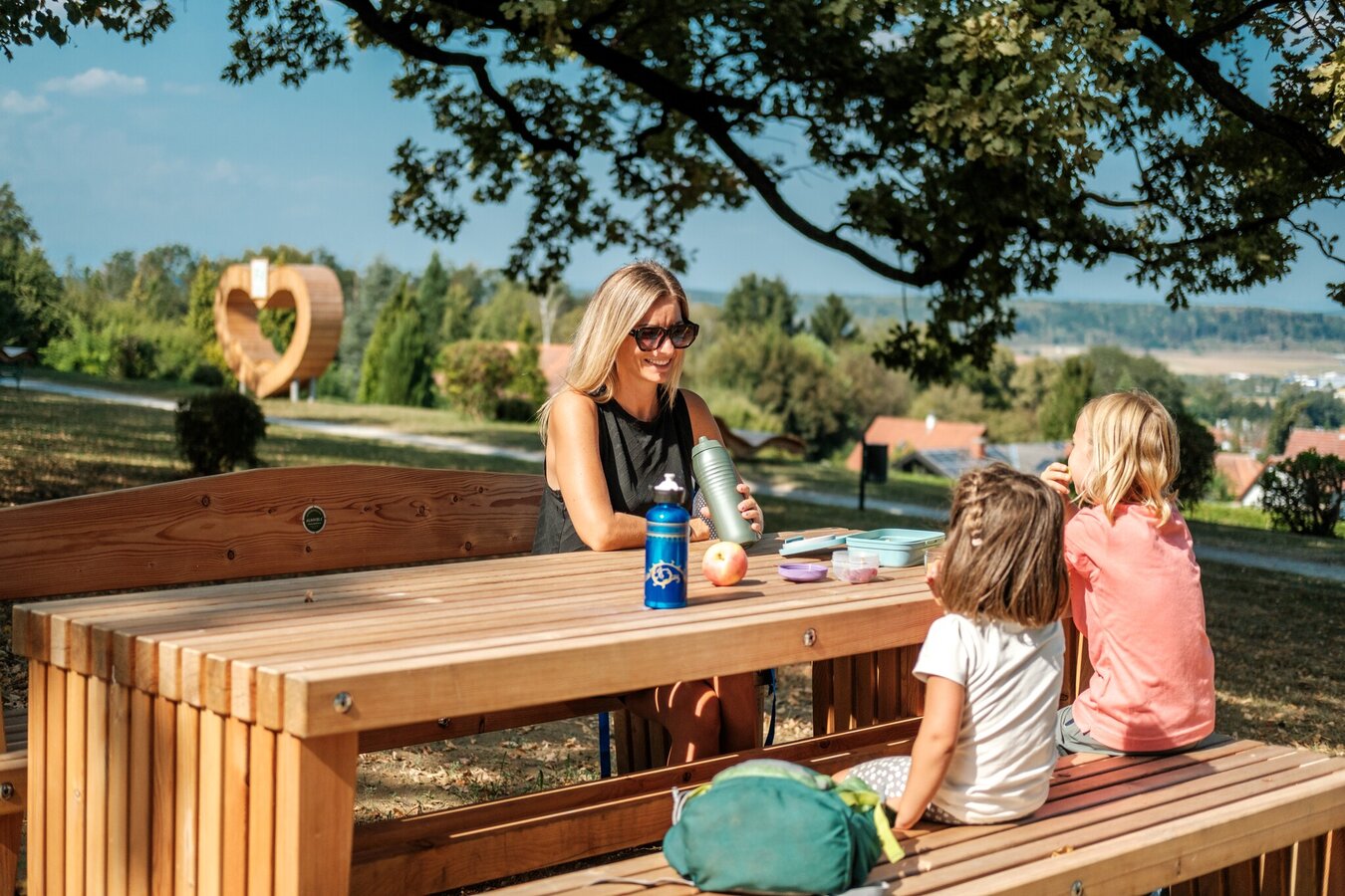 Panoramaherzerl mit Aussicht, Waldspielplatz, Baumlehrpfad, Motorik-Stationen und Sehenswürdigkeiten in der Stadt: Das alles und noch vieles mehr entdeckt ihr auf der großen Erlebniswelt-Runde durch Wald und Stadt.