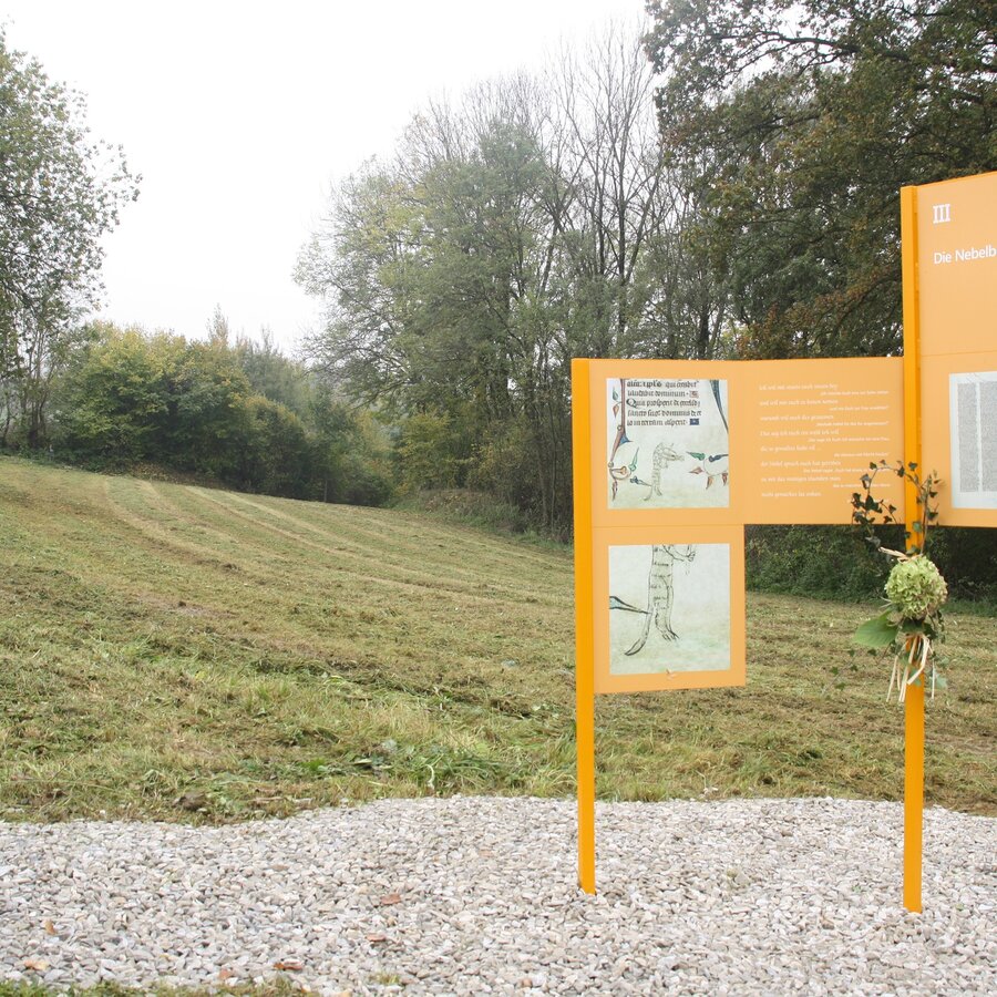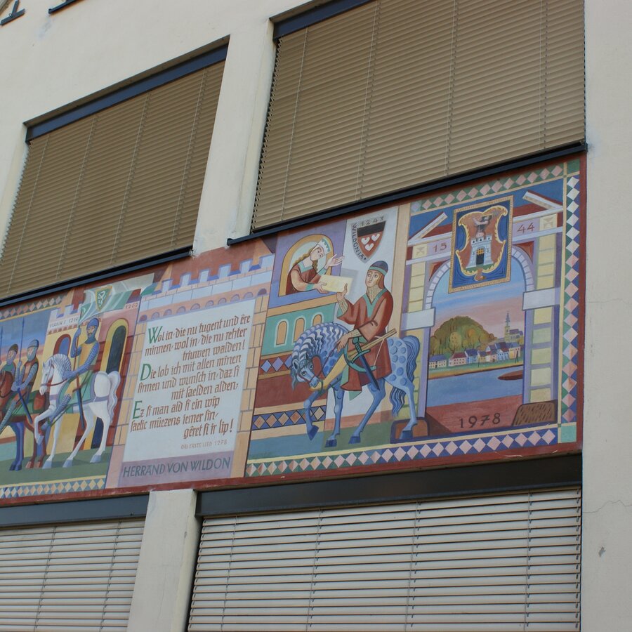 Der Pfad führt uns vom Schloss Wildon/Gemeindeamt, wo wir auch eine Orientierungsstation finden, durch den rechten Torbogen zum Schlossbergaufgang. Oben zweigt der bei der Erzählstation I rechts ab und verläuft weiter auf der jetzt Am Schloßberg genannten Straße (Erlebnisstation II) bis zur Kreuzung nach der Unterhauskapelle.
