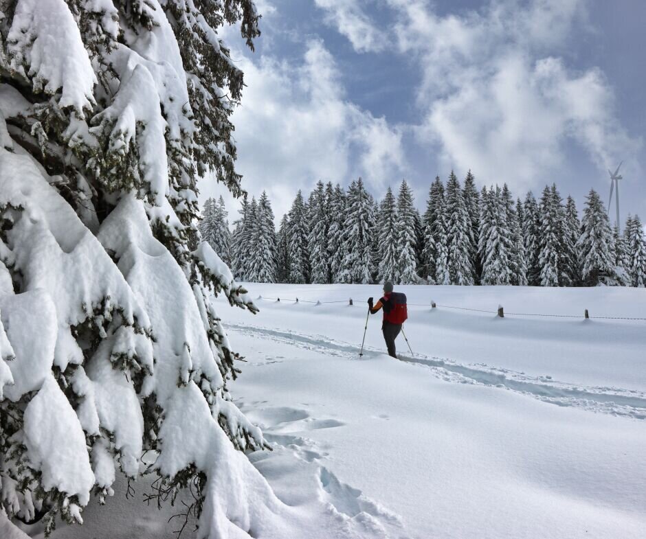 Ein Traum in weiß: Eine perfekte Anfänger-Schneeschuhtour mit Einkehrmöglichkeit im tief verschneiten Hebalm-Gebiet.