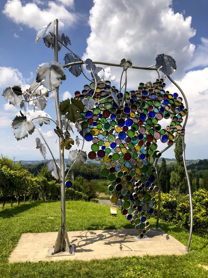 - Größte gläserne Weintraube: Eingebettet in sanfte Hügel und umgeben von unzähligen Weingärten steht am Eory-Kogel ein außergewöhnliches Wahrzeichen: die größte gläserne Weintraube der Welt. Das fünf Meter hohe, vier Meter breite und fast zwei Meter tiefe Kunstwerk aus Edelstahl und farbigem Schmelzglas symbolisiert nicht nur die Schönheit der Region, sondern auch ihre Wurzeln im Weinbau. Die Weintraube ist das Sinnbild der zweitgrößten Weinbaugemeinde der Steiermark. Sie steht für ein fruchtbares Land, wirtschaftliche Stärke und Lebensfreude – und ziert seit 1955 auch das Gemeindewappen.