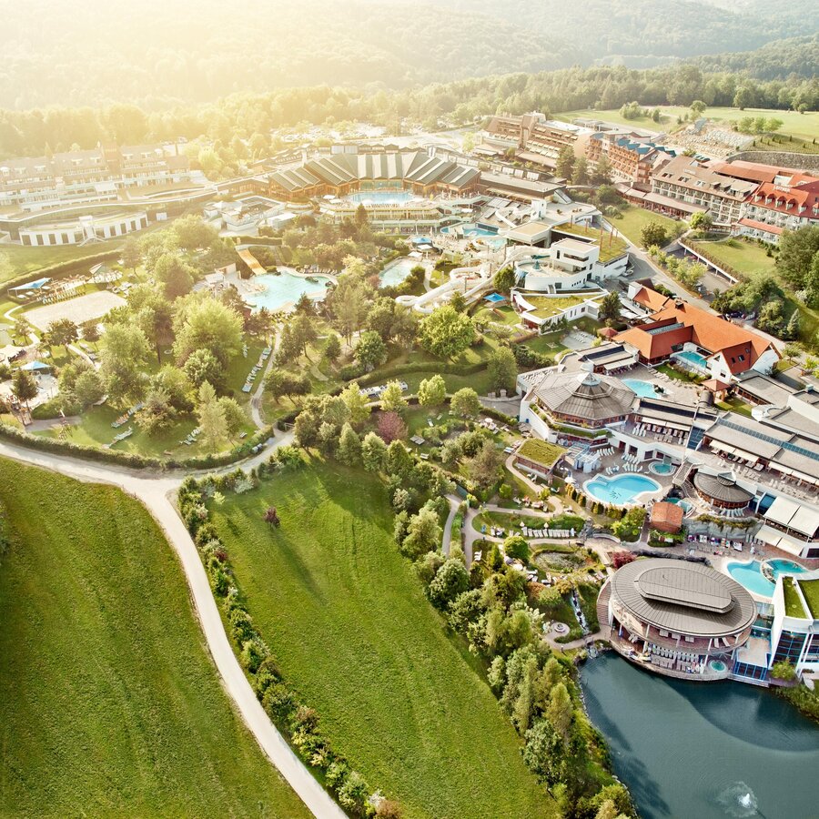 Having relaxed at the Heiltherme Bad Waltersdorf, today’s stage runs along the Thermal Spa Cycle Trail, carrying us through the Thermen- und Vulkanland Steiermark past Burgau Castle to the place dubbed “the world’s largest habitable work of art”, the Rogner Bad Blumau spa hotel. Designed by Friedensreich Hundertwasser, it is without doubt one of the most architecturally fascinating structures in Austria. But it’s not just the spa itself that is so intriguing: it is the only spa in Austria to have two of its own healing springs located on site, supplying the Rogner Bad Blumau with energy, warmth and vigour. Our route continues past the 1,000-year-old oak tree, heading south to more hot springs and wine roads such as the Thermenland Weinstraße and the Klöcher Weinstraße. We make a brief excursion into Burgenland, crossing the Lafnitz, the river that forms the border between Styria and Burgenland. We return to Styria via Deutsch-Kaltenbrunn and arrive in the spa capital of Fürstenfeld, which greets us with the Pfeilburg (castle), an impressive museum, and the largest outdoor pool in Europe, as well as an excellent gastronomy scene and great shopping facilities in the town centre. Beyond the Bad Loipersdorf golf course outside Fürstenfeld, the next spa ‒ probably the “liveliest” of them all ‒ Therme Loipersdorf awaits.