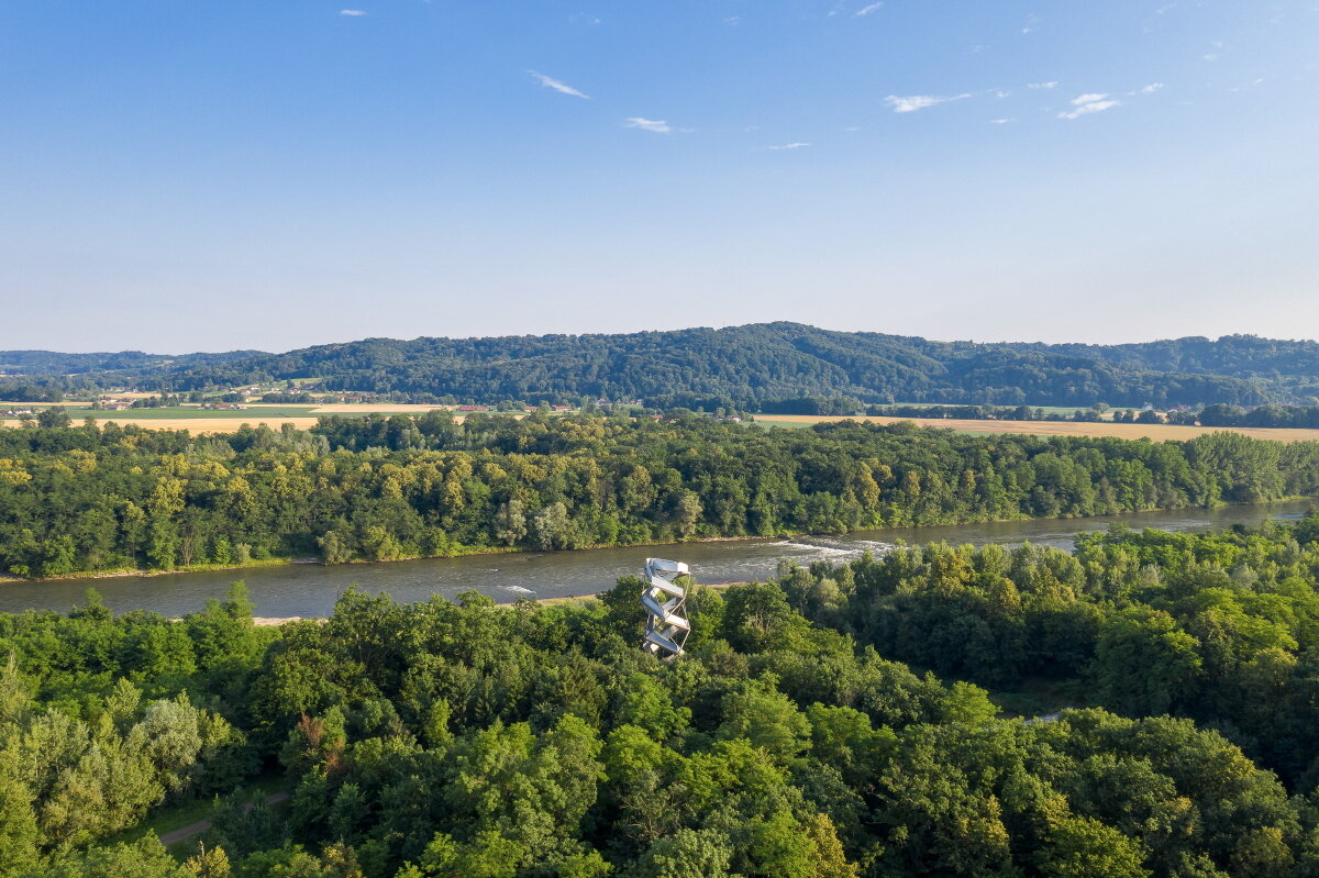 At the start our next stage, we head into the Raab Valley from Therme Loipersdorf, across a ridge. Raab Valley is where the Thermal Spa Cycle Trail and the well-known and popular family cycling trail Raab Valley Cycle Trail meet in the Raab floodplains. We, however, continue cycling along the Thermal Spa Cycle Trail through shady forests and past sweeping fields and graceful vineyard slopes along the Burgenland-Styria border to St. Anna/Aigen, where the finest wines in Styria wait to be sampled at the Gesamtsteirischen Vinothek. The view here of the entire spa/wine region over to Slovenia and the Hungarian lowlands is simply breathtaking. From St. Anna, the route travels down to Kutschenica, the gentle little stream marking the border between Styria and Slovenia. Once again, the Thermal Spa Cycle Trail crosses a ridge at Deutsch-Haseldorf in the wine region of Klöch, before heading downhill towards the Mediterranean-style town of Bad Radkersburg, the destination for this stage. The historic old town, the hot springs of the Parktherme, the river landscape of the Murauen, and the town’s proximity to its Slovenian neighbour makes it the perfect place to linger and enjoy some “borderless cycling”.
