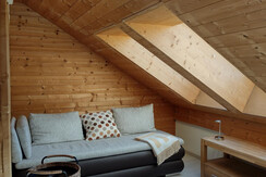 Der 1.Stock besteht aus einem Wohn-/Lesezimmer, einem großzügigen Schlafzimmer sowie Duschbad/WC und einer großen Terrasse.