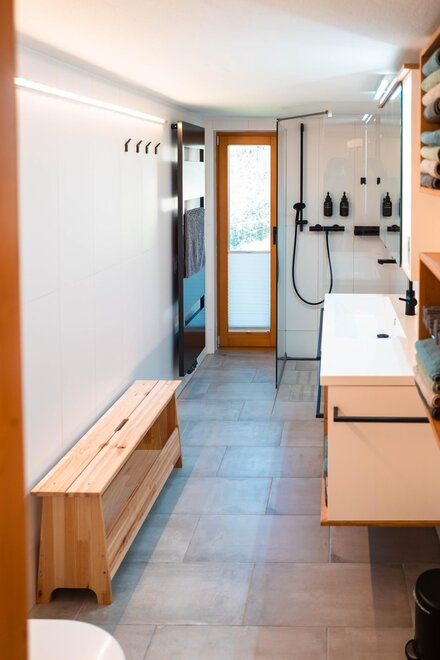 Das moderne Badezimmer bietet ein WC und eine geräumige Dusche, die für ein erfrischendes Duscherlebnis sorgt. Handtücher werden selbstverständlich bereitgestellt, sodass du dich um nichts kümmern musst.