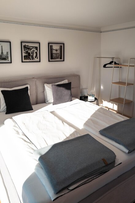 Unser Ferienhaus verfügt über zwei geschmackvoll gestaltete Schlafzimmer, die jeweils mit hochwertigen Doppelbetten und Flachbildfernsehern ausgestattet sind. Hier kannst du nach einen langen Tag entspannen und deine Lieblingssendungen über Streaming-Dienste wie Amazon Prime genießen.