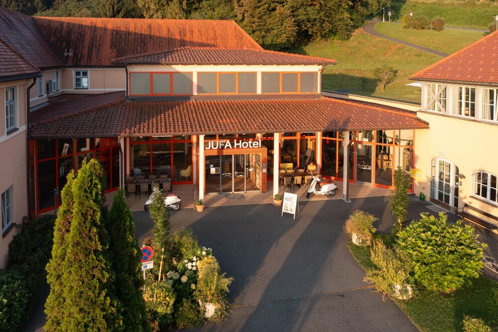 Das JUFA Hotel liegt am Fuße der Deutschlandsberger Schilcherweinberge. Oberhalb thront die historische Burg mit dem Museum Archeo Norico. Das Stadtzentrum, das Hietl-Freibad und weitere Freizeiteinrichtungen sind nur wenige Gehminuten entfernt.