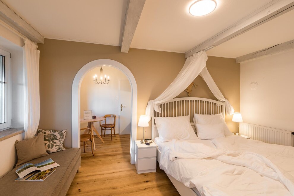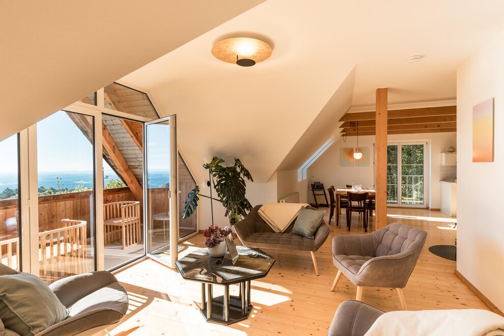 Für all jene, die das Besondere suchen, ist unsere “Deluxe” Wohnung genau das Richtige. Die lichtdurchfluteten Räume mit hellem Parkettboden bieten jede Menge Platz.