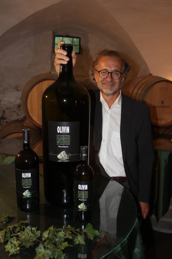 Der Einfluss des pannonischen Klimas und die vulkanischen Böden bestärkten sie in ihrer Vision, im Weißweinland Steiermark mit einem ungewöhnlichen Rotwein zu punkten. 1985 wurden die ersten Barriquefässer angeschafft, die ersten noch aus französischem Holz. Drei Jahre später waren schon die ersten Fässer aus eigenen Eichen im Keller. Mit dem Jahrgang 1988 war es dann soweit: Dieses Jahr brachte erstmals einen sehr ungewöhnlichen Rotwein hervor, kein "üblicher" Blauer Zweigelt, sondern "OLIVIN". Namensgeber für diesen wertvollsten Rotwein aus den besten Lagen des Weingutes ist und war ein Halbedelstein vulkanischen Ursprungs, genannt Olivin.
