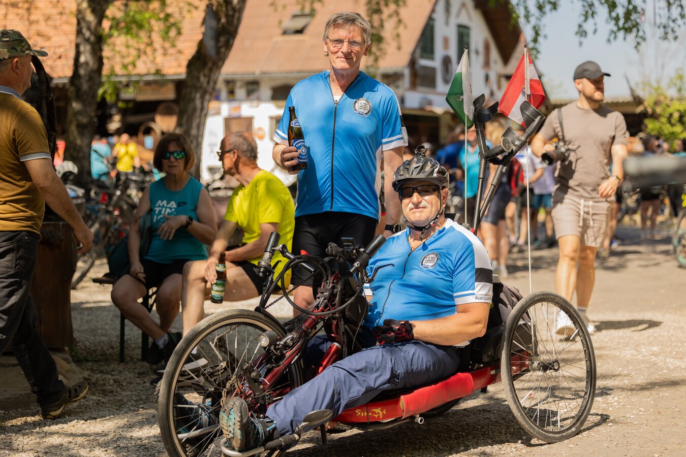 Bereits am Freitag wurde das Radwochenende mit dem EinRADeln eingeläutet, bei dem rund 170 Personen gemeinsam die Vorfreude auf das bevorstehende Wochenende genossen und sich beim Kürbis- und Ferienhof Majczan mit einer typisch regionalen Kernöl-Eierspeise gestärkt haben. Am Samstag wurde dann ein Gang zugelegt mit dem großen AnRADeln. Bei den 5 geführten Touren war für alle Radsportfreunde etwas dabei, denn für Nostalgiker:innen, Mountainbiker:innen, Rennradfans sowie für Genussradler:innen und Familien wurden individuelle Levels und Strecken geboten. Aufgrund der umfassenden Hauptplatzsanierung in Bad Radkersburg fand der Start und das Ziel des traditionellen AnRADelns dieses Jahr erstmals auf der Hasenheide statt, wo die fleißigen Radfahrerinnen und Radfahrer von regionaler Gastronomie verköstigt wurden und sich auf die kommenden Touren einstimmen konnten.
