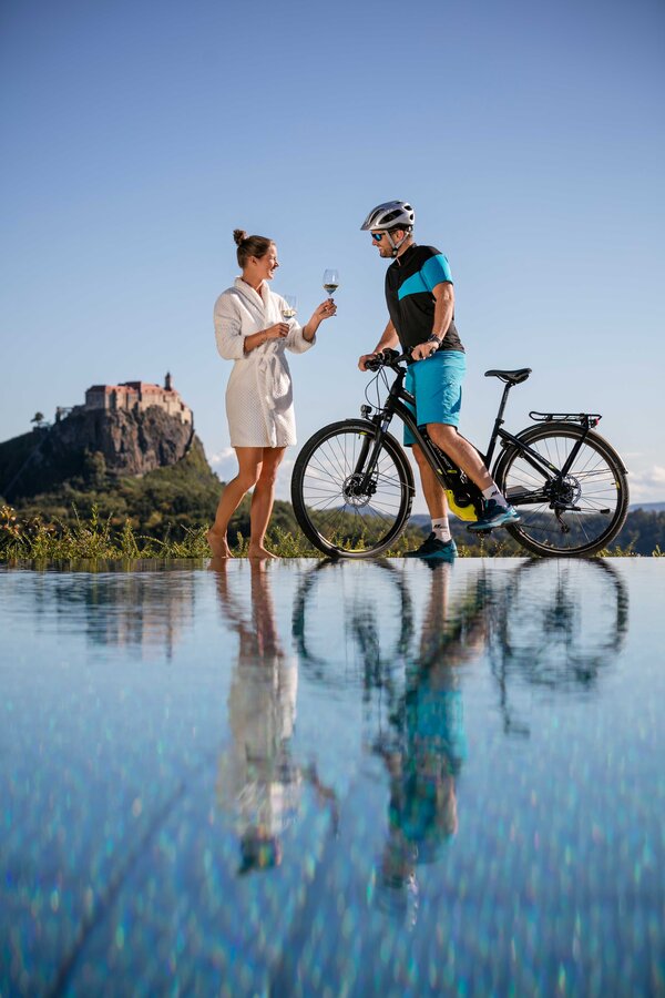 Die Tour bietet zahlreiche herrliche Aussichtspunkte ins Hügelland. Genieße den Blick über die malerische Landschaft, die von Wein- und Obstgärten geprägt ist. Ob bei einer kurzen Rast oder während der Fahrt – die Schönheit der Region begleitet dich auf jedem Kilometer dieser Radtour. Erlebe die faszinierende Riegersburg und tauche ein in die Welt von David Gölles - House of Whiskey, Gin & Rum mit exquisiten Verkostungen. Besuche die Kowald VINO.TAKE für regionale Weine und genieße pure Entspannung im Thermenresort Loipersdorf. Ein erfrischender Tag am Seebad Riegersburg rundet das Genuss-Erlebnis perfekt ab.