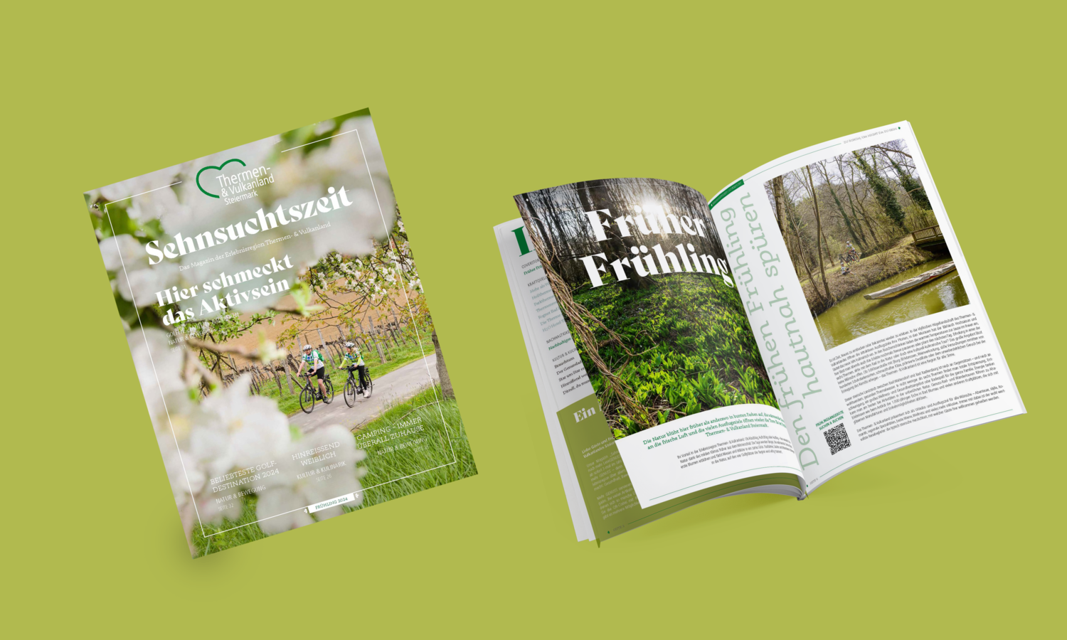 Die Frühlingsausgabe unseres Magazins „Sehnsuchtszeit“ ist frisch gedruckt bei uns eingelangt – mit jeder Menge Informationen und Storys aus dem Thermen- & Vulkanland, Vorschau auf Veranstaltungen und News aus den Thermen. Die Wanderdörfer stellen sich vor und wir freuen uns natürlich auch, Österreichs beliebteste Golfdestination des Jahre 2024 zu sein. Wir laden Sie herzlichst ein, unser Magazin kostenlos zu abonnieren!