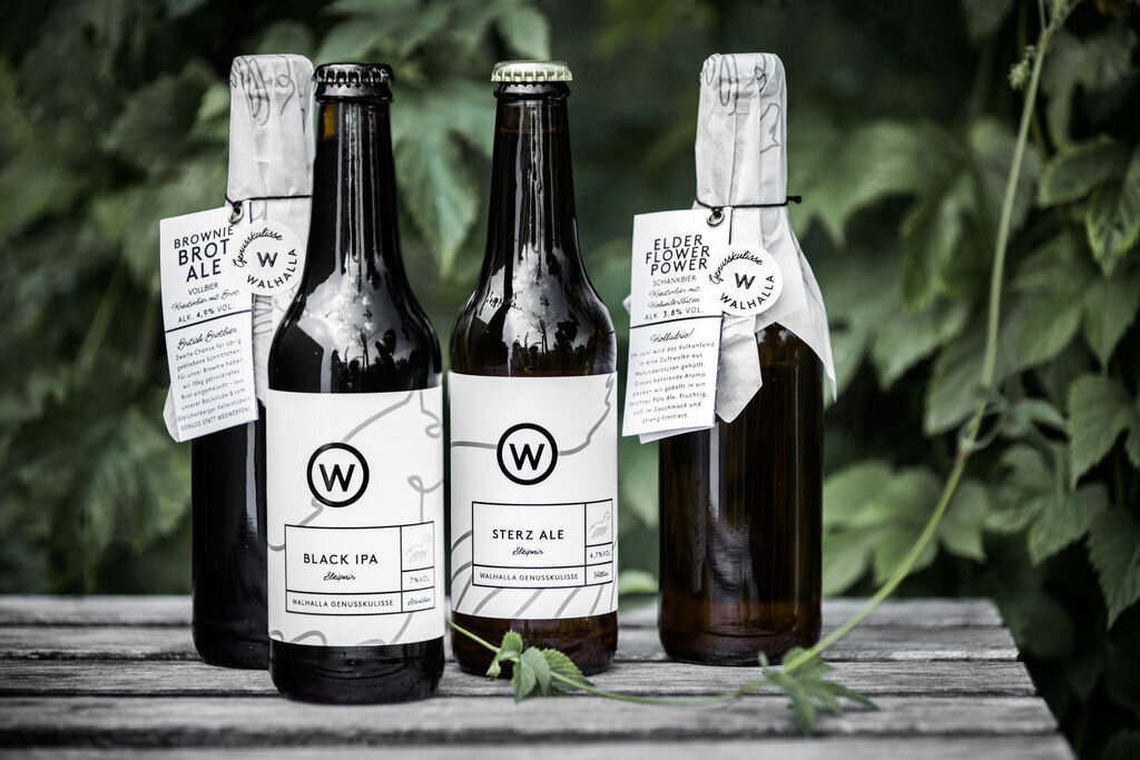 Walhalla steht für modernes „Craft Beer" mit steirischer Handschrift. Handgebraut in kleinen Mengen, und mit Blick für besondere, regionale Zutaten. Die Biere kann man auch als echten Hopfen-Schampus bezeichnen, weil alle Biere in der Flasche nachgären. „Falstaff" zeichnete die ganzjährig erhältlichen Biersorten aus, auch bei der Österreichischen Staatsmeisterschaft gab es Preise. Die Bierwelt von Walhalla umfasst Biere der Saison: Mal ein Pale Ale mit Holunderblüten, mal ein Brown Ale mit altem Brot, mal ein Saison mit Isabella-Trauben, mal ein Böhmisches Dunkles Lager mit Tannenreisig. Mal traditionell, mal experimentell, immer spannend und bedingungslos süffig. Und steirisch, wie das Hausbier namens Sterz Ale. Der Malzkörper ist extra schlank, weil wir hier Polenta aus dem Vulkanland mit einbrauen. Durch Hopfung während der Gärung wird dieses Goldstück niemals langweilig.