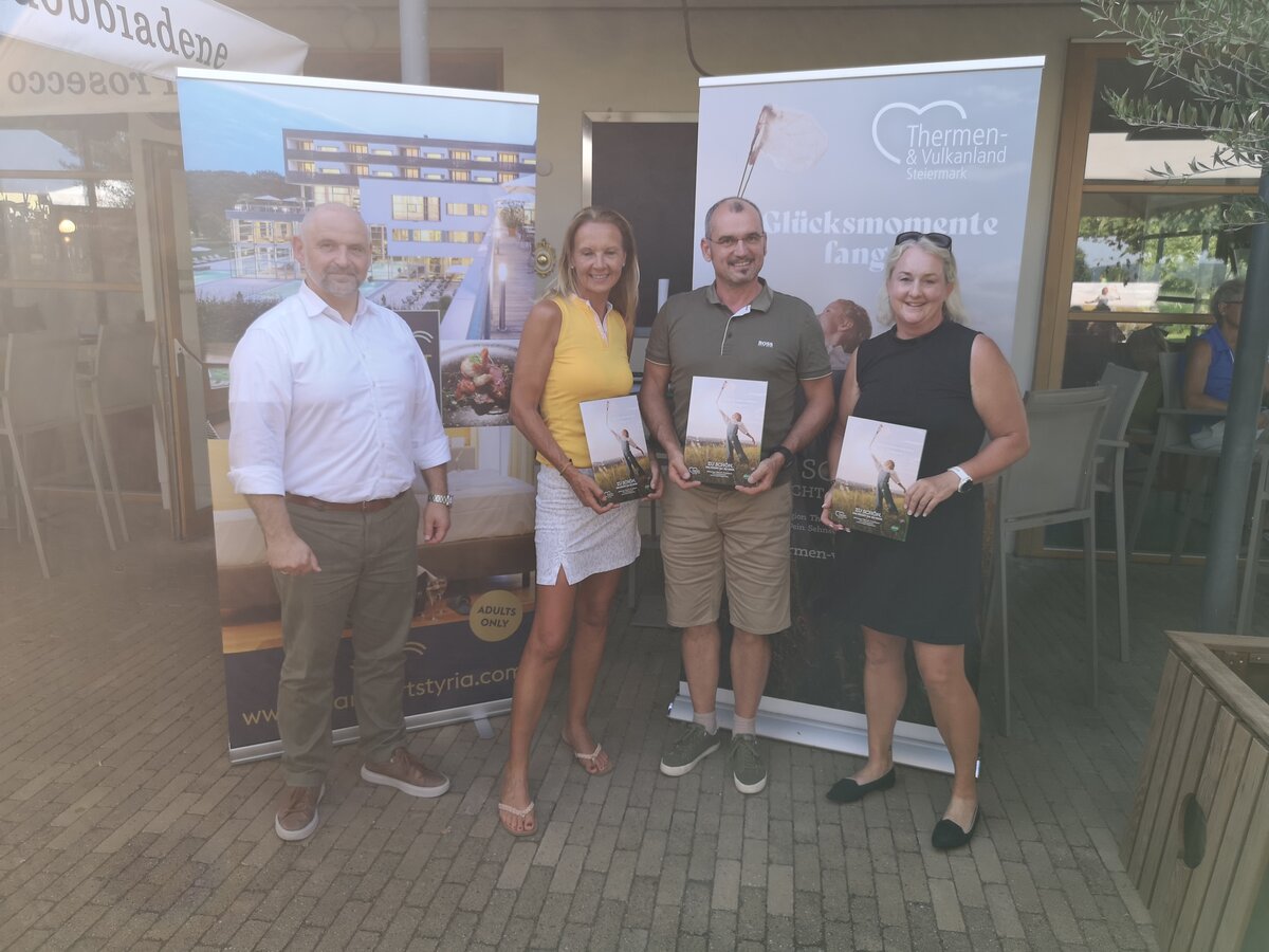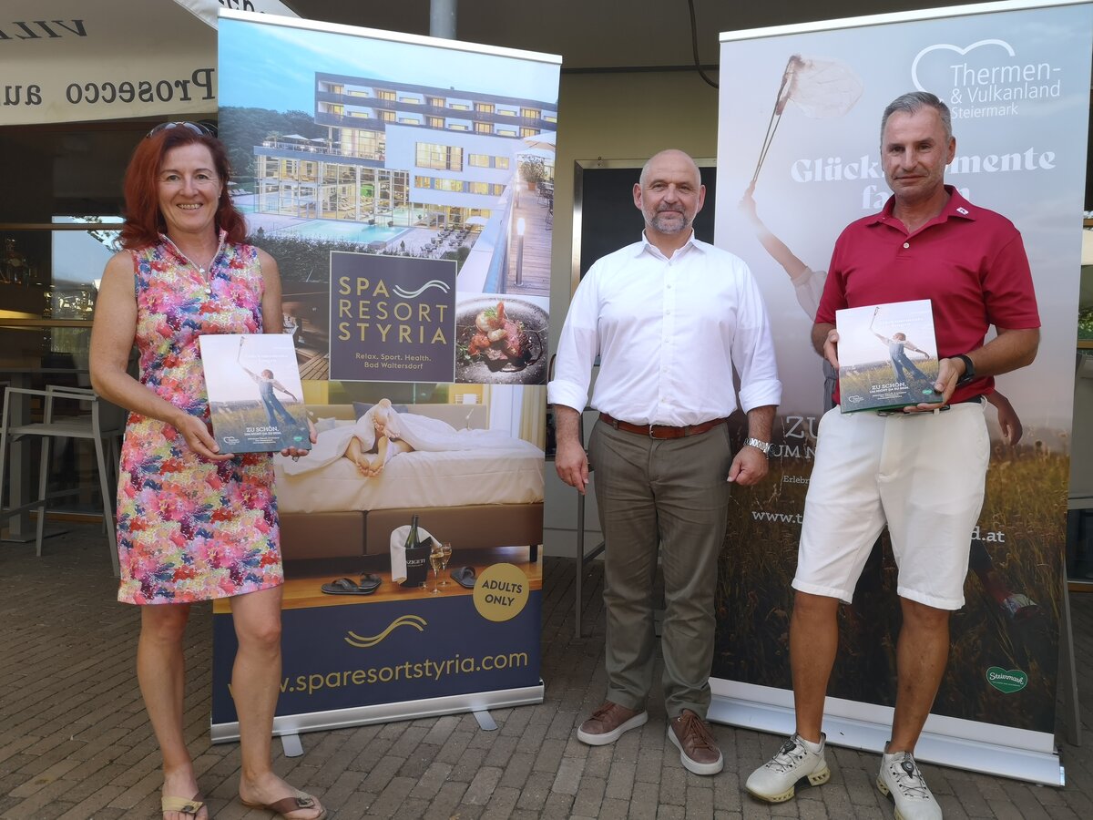 Drei Golftage, drei verschiedene Golfplätze, beste Stimmung und feinste Kulinarik – die 9. Thermen- & Vulkanland Trophy presented by Spa Resort Styria war ein voller Erfolg. Nach den drei Turniertagen auf der Thermengolfanlage Loipersdorf, Traminer Golf Klöch und Golfclub Bad Waltersdorf standen mit Claudia Sinitsch-Pfeiler (TGC Loipersdorf) und Erwin Neumeister (GC Gut Murstätten) die beiden Bruttosieger fest. Die Siegerehrung nahm der General Manager vom Spa Resort Styria, Thomas Gneist, vor.