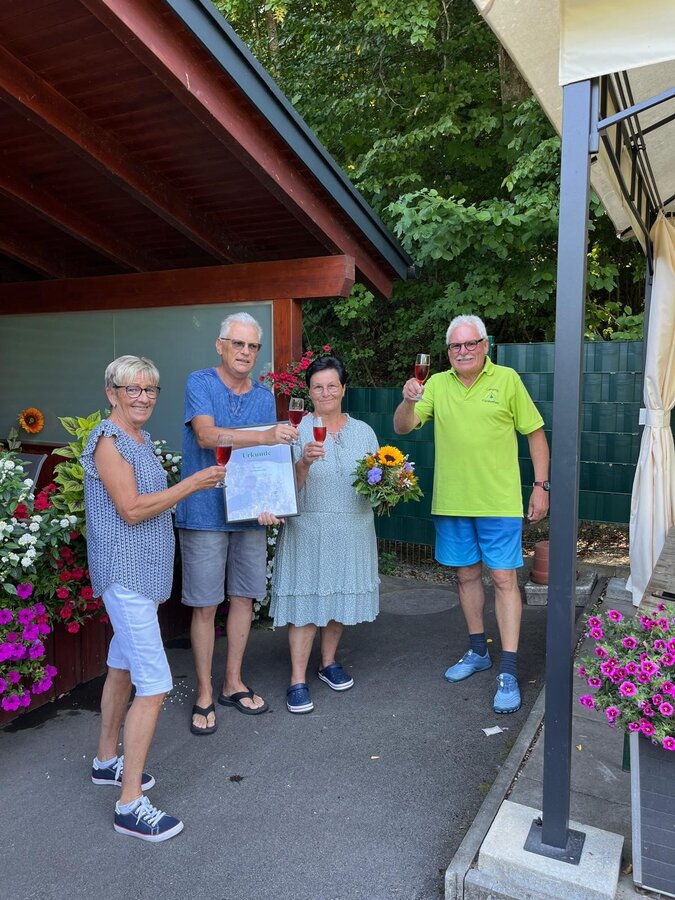 Seit 30 Jahren genießt Familie Skamletz aus Deutschfeistritz ihre Urlaube auf dem Campingplatz in Fürstenfeld. Besonders gefällt dem Ehepaar die idyllische Lage der Anlage, die auf zwei Seiten vom Buchwald und an der dritten Seite von der ruhig dahinfließenden Feistritz umschlossenen ist. Für diese Urlaubstreue wurde Familie Skamletz eine Ehrenurkunde vom Thermen- & Vulkanland überreicht, Campingplatz-Chef Anton Deutsch und seine Frau Gerlinde gratulierten und sprachen Dank aus.