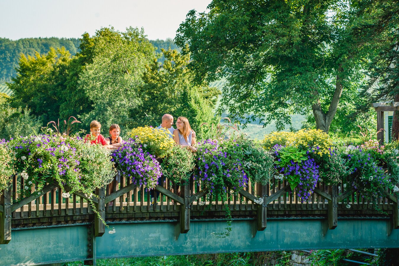 Der 13 Hekatar große Thermenpark in Bad Blumau verbindet die außergewöhnliche Architektur des Rogner Bad Blumau von Friedensreich Hundertwasser mit der natürlichen Schönheit der Region. Entlang des Safenbachs laden heimische Gehölze, Wildstauden und duftende Kräuterflächen zum Verweilen ein. In unmittelbarer Nähe lädt die 1.000-jährige Eiche zum Verweilen ein – ein Naturdenkmal, das Ruhe, Kraft und Geschichte ausstrahlt.