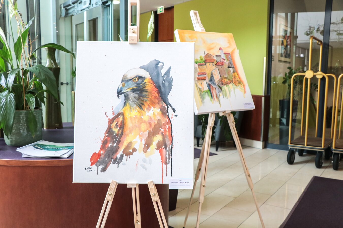 Gemeinsam mit Herrn Robert Heinz & allen Besucher:innen wurde mit einer Vernissage eine Kunstausstellung im Eingangsbereich des Thermalhotels Fontana eröffnet. In interessierter Runde konnte man Herrn Heinz kennenlernen, Hintergrundgeschichten und Gedanken zu seinen Bildern erfahren und mit Verköstigung einen gemütlichen Nachmittag verbringen. Die Bilder sind noch bis 4. Juli in der Lobby des Thermalhotels bewundert und auch erworben werden.
