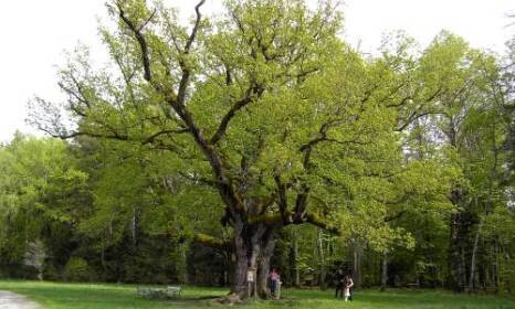 Direkt im Ortszentrum von Bad Blumau halten wir uns nun schräg rechts um über den Bergweg in den Ortsteil Loimeth zu gelangen, wo wir wieder auf den 07-er treffen. Zunächst am Waldrand entlang und dann ein kurzes Stück mitten durch einen wunderschönen Wald wandern wir weiter um direkt zur "Tausendjährigen Eiche" auf der Bierbaumer Höhe zu gelangen. Sie gilt als die älteste Eiche Europas und beeindruckt mit einer Höhe von 30 Meter und einem Stammdurchmesser von 2,50 Meter. Die unglaubliche Baumkrone mit einem Durchmesser von rund 50 Meter zählt zu den schönsten Rastplätzen im Thermenland.