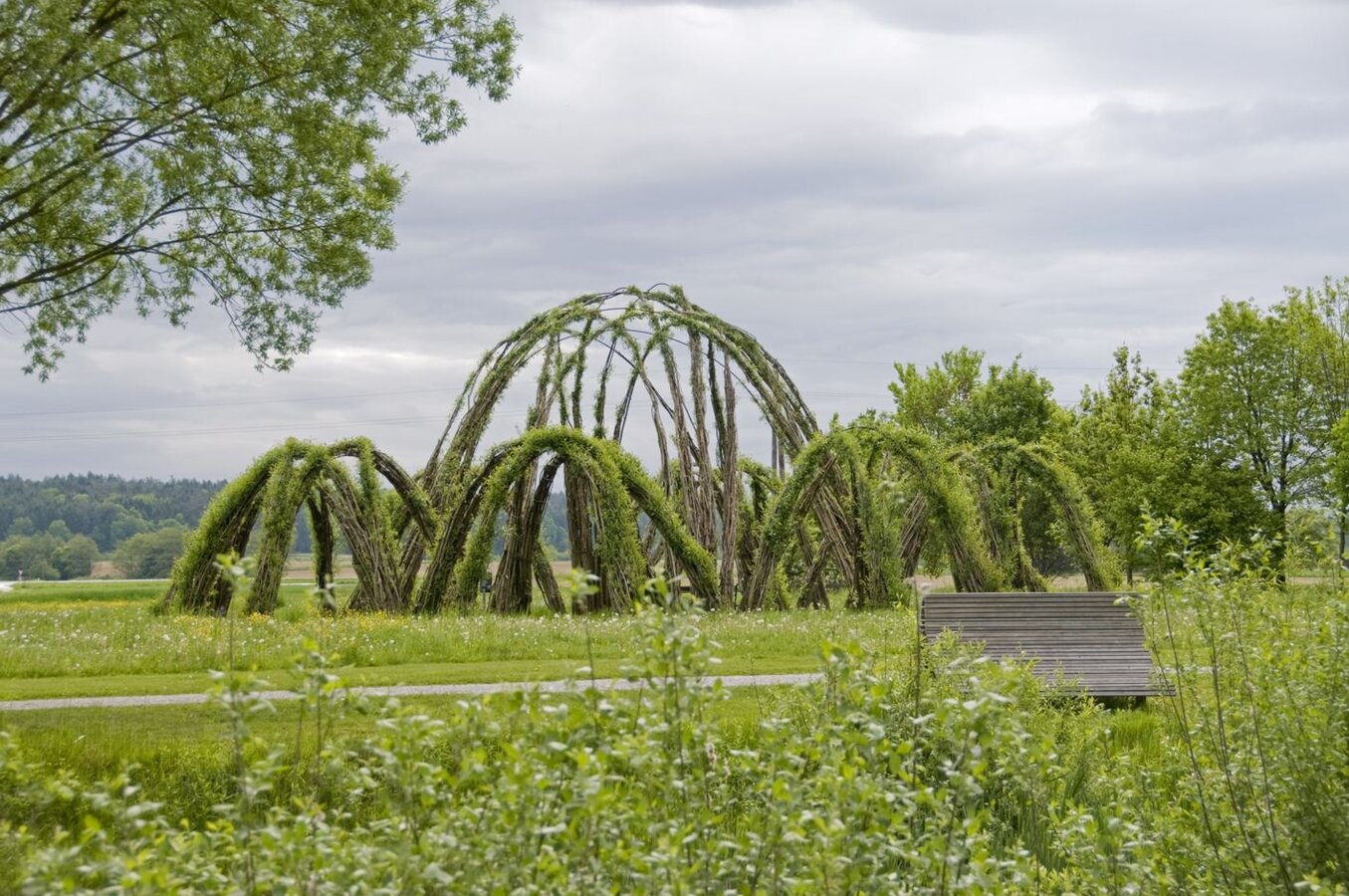 Der weitere Weg führt uns durch den 13 ha großen Thermenpark in das Zentrum des beschaulichen, blumenreichen Ortes Bad Blumau. Besuchenswert im Thermenpark ist insbesondere der Weidenbau, mit einer Innenkuppel von 22 Meter Durchmesser, einer Höhe von 8 Meter und umrahmt mit zahlreichen kleinen Kuppeln einzigartig im Thermen- & Vulkanland.