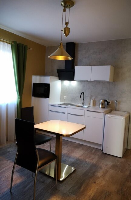 Das Aparthotel befindet sich in einer traumhaften Alleinlage auf einer kleinen Anhöhe mit Panoramablick über die Ortschaft vor dem Wald auf der ruhigen Sackgasse. Hin und wieder gibt es Begegnungen mit Wild in freier Natur: Fasane, Igel, Hasen, Füchse, die Rehe können direkt von der Terrasse beobachtet werden und eine Menge Vogelarten.