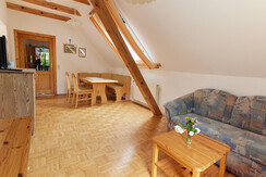 Von dieser Ferienwohnung haben Sie Richtung Süd-Westen den Blick auf unsere wunderschöne Landschaft mit Holunder und Christbaumkulturen. Im Hintergrund heben sich die 2 Gleichenbergkogel, ehemalige Vulkane aus der Waldlandschaft hervor. Die Ferienwohnung hat eine Größe von 75 m², wo sich 4 bis 6 Personen Wohlfühlen können. Vom Vorraum aus geht es in Küche, in den Wohn – Essraum, in das Bad, in das WC und in 3 Schlafzimmer. Ein großer Balkon mit Gartengarnitur und Liegestühlen lädt zum privaten und ungestörten Verweilen ein.