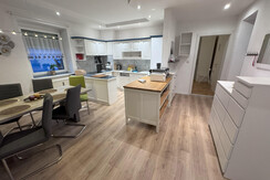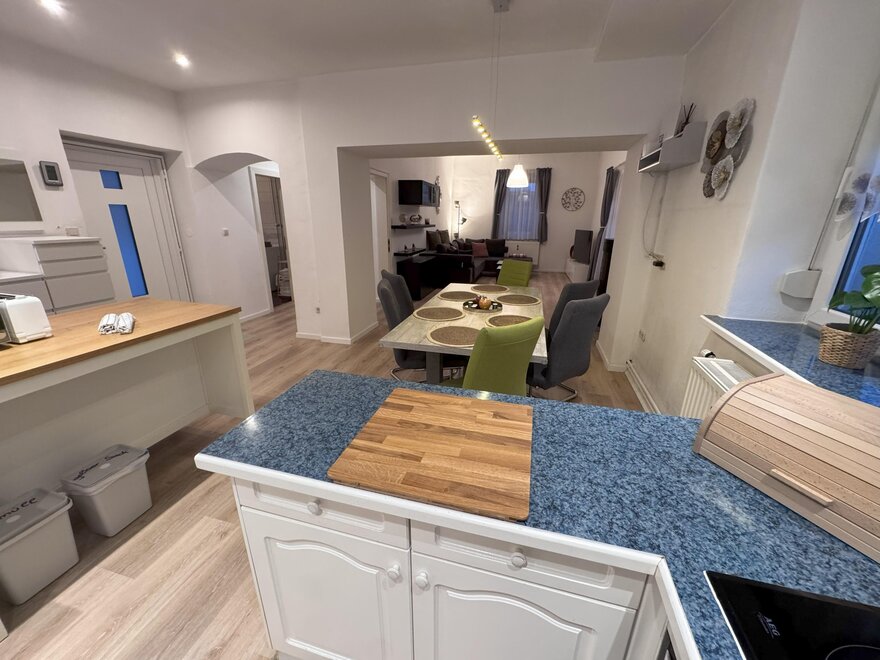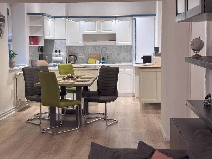 Unsere größte Wohnung mit 142 m² Wohnfläche ist perfekt für größere Familien oder Gruppen von bis zu 7–8 Personen. Zwei Schlafzimmer, ein weitläufiger Wohn- und Essbereich, eine voll ausgestattete Küche, ein großes Badezimmer und direkter Zugang in den Garten machen Alex zu einem idealen Rückzugsort mit viel Raum zum Wohlfühlen.