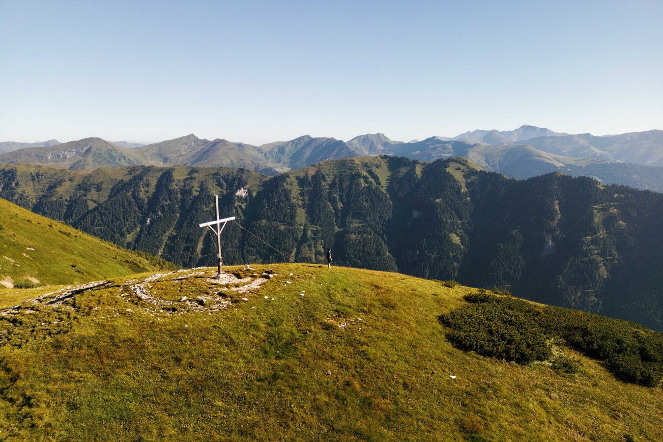 Wir starten beim Sommerparkplatz (1), 1412 m, im Scharnitzgraben und gehen gleich rechts über die Brücke. Der leicht ansteigende Forstweg führt beim Stützpunkt der Berg- und Naturwacht (Jaurishütte) vorbei und über mehrere, kleinere Bäche, bis wir nach ca. 1,3 km links den Einstieg in den Wanderweg sehen. Der Steig führt teilweise etwas steiler durch den Wald bergauf, bis wir wieder die Forst- bzw. Zufahrtsstraße zur Wildalm erreichen. Wer es gemütlicher haben will, kann auch die Forststraße ausgehen. Weiter geht es in Serpentinen entlang der Straße bis zu der gemütlichen Hütte der Wildalm (2), 1753 m. Bei der Hütte links vorbei, wandern wir über die Almflächen in Richtung Kleinhansl (Klein Hansl) und Jauriskampel (Jauriskampl). Zu Beginn durchwandern wir niedrige Latschenfelder und folgen dem Bacherl gemütlich bergauf, bis wir nach kurzer Zeit unser erstes Ziel in der Ferne, den Kleinhansl, am Gipfelkreuz erkennen können. Bei der Wegkreuzung Jauriskampel bleiben wir geradeaus und kommen alsbald zum Schinderbrunnderl. Über Serpentinen erreichen wir in Folge unseren ersten Gipfel, den Kleinhansl (3), 2217 m. Hier hat man die Möglichkeit zum Großhansl (2.315 m) über einen nicht markierten Steig weiterzugehen. Dieser Abstecher (ca. 1 Std. hin und retour) lohnt sich, jedoch ist Trittsicherheit und Schwindelfreiheit vorauszusetzen. Vom Kleinhansl gehen wir ein Stück gleich zurück, um dann entlang des Bergkammes in Richtung Nordosten weiterzugehen. Der Steig ist zu erkennen, jedoch sind hier keine Markierungen oder Wegweiser zu finden. Der weitere Wegverlauf fällt tendenziell bergab, wobei wir uns meist auf einer Seehöhe von ca. 2000 Metern bewegen. Der zweite Gipfel, der Jauriskampel (4), 2064 m, ist aufgrund des schroffen Felses, bereits von der Ferne gut zu erkennen. Kurz vorm Gipfel hat man die Möglichkeit, über den markierten Steig ins Kar abzusteigen. Wir bleiben jedoch auf dem Weg und führen unsere Höhenwanderung fort. Der Steig ist nach kurzer Zeit rechts unterhalb des Bergrückens zu erkennen. Wir gehen unter der Edelweißwand vorbei und bleiben mehr oder weniger immer auf derselben Seehöhe. Da mehrere Steige, meist parallel, vorhanden sind, kann man sich hier nur auf Sicht orientieren. Nachdem wir unter dem gipfelkreuzlosen Gruber Hirnkogel vorbei gegangen sind, erreichen wir den Hirnkogel (5), 2012 m, und somit unseren dritten Gipfel. Einige Meter gleich zurück und dann sehen wir links die rot-weiß-roten Markierungen und den Steig. Ab nun geht es kontinuierlich über die Almflächen bergab, bis zu den markanten Gesteinsformationen und in Folge über einen bewachsenen Forstweg zur Wildalmhütte (2), 1753 m. Der restliche Abstieg führt über die uns bereits bekannte Aufstiegsroute.