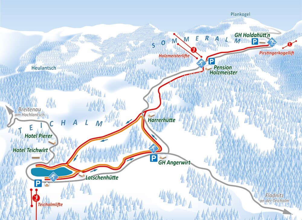 • Der Loipe startet beim Teichalmsee