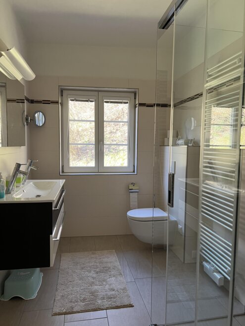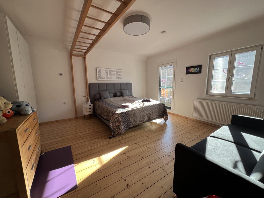 Gemeinschaftsbereiche, die in Absprache mit den Eigentümern genutzt werden, sind eine Panorama-Sauna im Außenbereich mit Liegeterrasse (3 Liegen), Felsendusche im Sommer sowie Kaltwasseranschluss sowie das „Salettl“ mit Tisch und 8 gemütlichen Sitzplätzen, Weber-Gasgrill und Hängematte für Ihren Sommeraufenthalt. Ein großer Parkplatz ist ebenso vorhanden wie ein hochwertiges professionelles Riesentrampolin und eine Schaukel unter dem alten Apfelbaum. Da das Haus eine wunderschöne Hang-Aussichts-Alleinlage direkt unter dem Schloss Obermurau genießt, ist es nur über eine Treppe erreichbar und für mobilitätseingeschränkte Personen und Kleinkinder (keine Treppengitter vorhanden) eher weniger geeignet. Hunde sind willkommen. Ideal für 1-2 Familien mit Kindern ab Kindergartenalter bzw. 2 Paare (maximal bis zu 8 Personen). High-Speed WIFI verfügbar. Rauchen ist im Haus nicht gestattet. Wir freuen uns auf Ihre Anfrage.